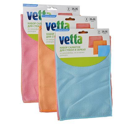 VETTA Набор салфеток из микрофибры для стекол и зеркал 2 шт., 25х35 см, 250г/кв.м, 3 цвета