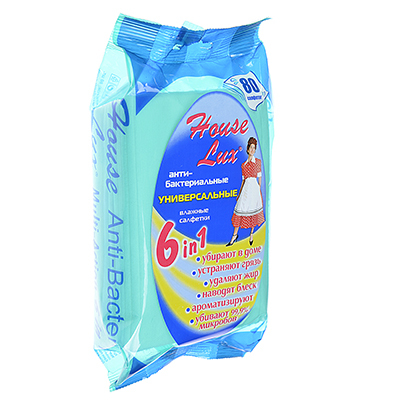 House Lux Салфетки влажные универсальные антибактериальные для уборки 6 в 1, 80шт, арт.48261
