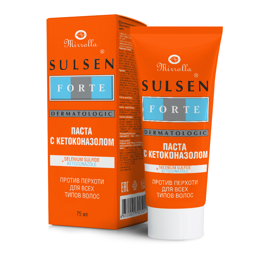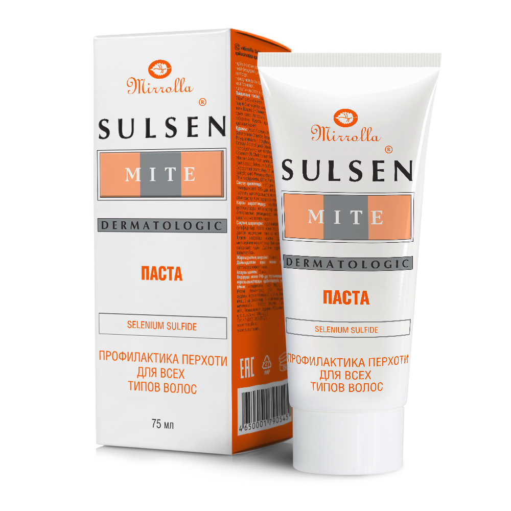 Антисептическое действие. Против перхоти. Активный состав средства для волос, в который входят Selenium Sulfide и Ketoconazole, оказывает выраженное противоперхотное действие, снимает раздражения и во... Показать описаниеспаления кожи головы, регулирует работу сальных желез, уменьшает выраженность дискомфортных ощущений. Кондиционирующие вещества смягчают волосы, облегчают расчёсывание и придают здоровый блеск. способствует устранению перхоти; нормализует работу сальных желез; снижает интенсивность зуда и жжения; восстанавливает структуру волос. СОСТАВ: Aqua, Cetearyl Alcohol, Cetrimonium Chloride, Propylene Glycol, Polyquaternium-7, Ethylhexyl Cocoate, Cetearyl Alcohol (and) Dipalmitoylethyl Hydroxyethylmonium Methosulfate (and) Ceteareth-20, Ketoconazole, Selenium Sulfide, Allantoin Acetyl Methionine, Arctium Lappa Root Extract, Chelidonium Majus Extract, Cyclopentasiloxane, Peg-12 Dimethicone, Salicylic Acid, Phenoxyethanol, Ethylhexylglycerin, EDTA, Parfum. СПОСОБ ПРИМЕНЕНИЯ: Вымыть волосы шампунем «Mirrolla Sulsen Forte»® с кетоконазолом. Тщательно втереть пасту массажным движениями в корни волос. Выдержать на волосах 5-10 минут, смыть теплой водой. Использовать через день на протяжении 4-6 недель, после чего перейти на регулярное применение пасты «Mirrolla Sulsen Mite»® еще в течение 1,5-2 месяцев. Повторять курс по необходимости.