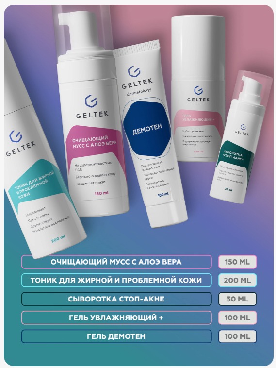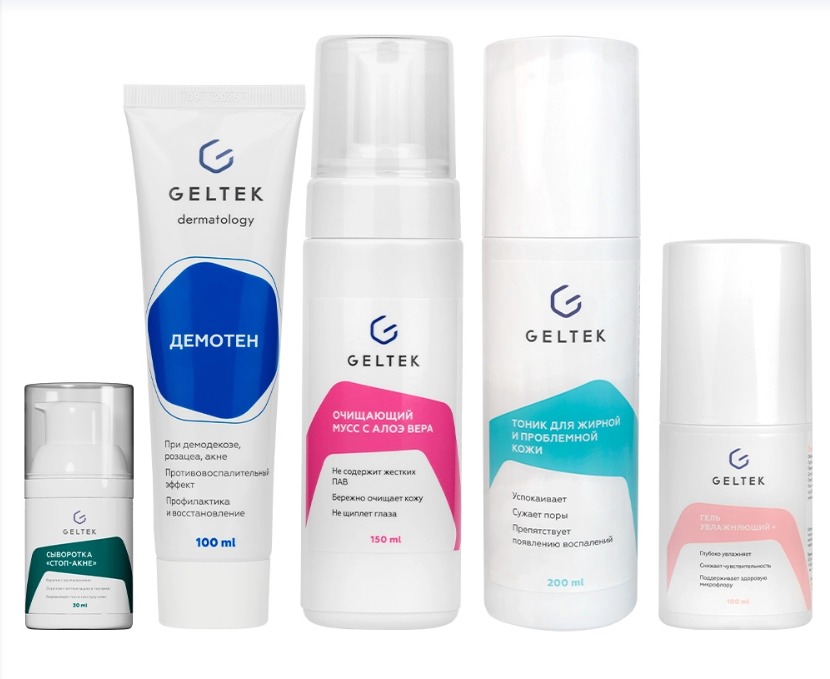 Специалисты компании разработали 9 серий косметики для домашнего использования и для аппаратной косметологии под брендом Гельтек для решения самых различных задач в косметологии: серия для ухода за зрелой кожей, серия для ухода за сухой и чувствительной кожей, серия по уходу за жирной и проблемной кожей, серия по уходу за телом, серия препаратов интенсивного действия (сыворотки, концентраты).