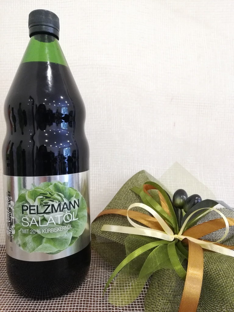 Масло для заправки салатов Pelzmann – это смесь ценного рапсового масла и масла из тыквенных семечек в пропорции 70% и 30% соответственно. Строгое соблюдение требований к качеству и многолетний опыт п... Показать описаниерессования масла – залог уникальности продукции Pelzmann. Высокое содержание ненасыщенных жирных кислот делает масло для заправки салатов неотъемлемой частью здорового питания и превосходно сочетается со всевозможными салатами.