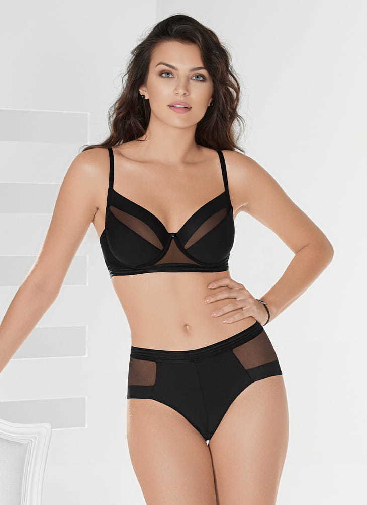 Формованная чашка, эффект "пуш-ап", каркас. Материалы: эластичное полотно, эластичное кружево.