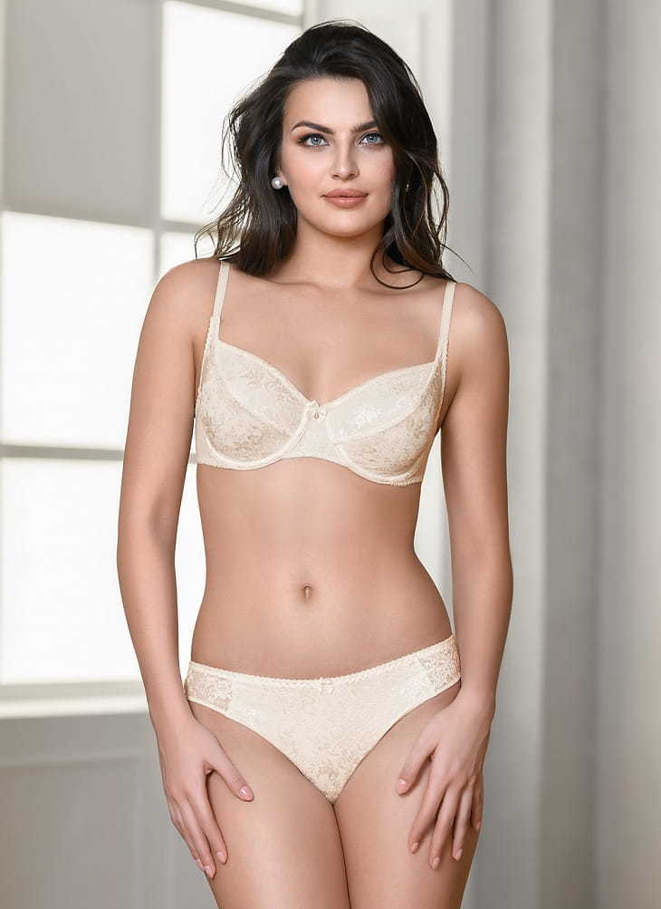 Эластичное полотно, эластичное кружево. Бюстгальтер на формирующем подкладе нижней детали чашки.