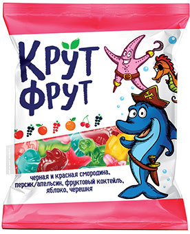 Мармелад «Крут Фрут» жевательный, в форме обитателей подводного мира Жевательный мармелад со вкусом черной и красной смородины, яблока, черешни и фруктового коктейля Вкусный и полезный мармелад в форм... Показать описаниее обитателей подводного мира. Жевательный мармелад гармонично вписывается в систему здорового питания: - в мармеладе отсутствуют жиры - нет искусственных красителей - в основе лакомства натуральный сок ягод и фруктов.СОСТАВ: Состав: глюкозно-фруктозный сироп, сахар, желатин, сок яблочный концентрированный, регулятор кислотности: лимонная кислота; концентрированные соки (апельсина, вишни); комплексная пищевая добавка (агент желирующий пектин, стабилизаторы: Е337, Е452); комплексная пищевая добавка (растительные масла (пальмовое, подсолнечное), глазирователи (воск карнаубский, воск пчелиный), антиокислители: альфа-Токоферол, аскорбилпальмитат, лимонная кислота); красящий концентрат из спирулины (инвертный сахар, вода, D-трегалоза, концентрат спирулины, регулятор кислотности цитрат натрия 3-замещенный); загуститель глицерин; ароматизаторы; концентрированный сок черной моркови, смесь концентрированных соков моркови, черной смородины (концентрированный сок моркови, инвертный сахар, концентрированный сок черной смородины, вода); краситель натуральный Натуральный каротин (каротин, носитель: глицерин, подсолнечное масло, дистиллированная вода, эмульгатор: эфиры сахарозы, антиоксиданты: Е304, Е307); краситель натуральный Лайм Зеленый (медный комплекс хлорофиллинов, куркумин, эмульгатор: Твин 80; дистиллированная вода, носитель: пропиленгликоль; регуляторы кислотности: лимонная кислота, гидроксид калия); витамины: С, ниацинамид (РР), В6, пантотеновая кислота, фолиевая кислота. Продукт может содержать консервант: диоксид серы.
