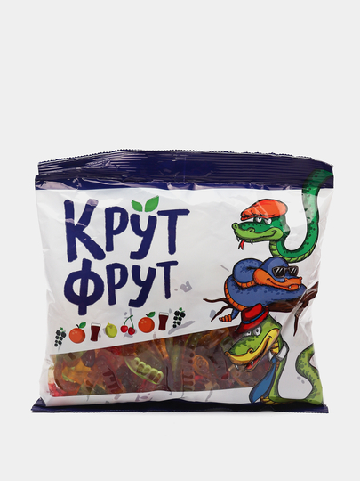 Мармелад «Крут Фрут» жевательный, в форме забавных змеек Жевательный мармелад в виде забавных змеек. Мармелад со вкусом вишни и маракуйи, колы и лайма, черной смородины и апельсина. Жевательный мармел... Показать описаниеад гармонично вписывается в систему здорового питания: - в мармеладе отсутствуют жиры - нет искусственных красителей - в основе лакомства натуральный сок ягод и фруктов.СОСТАВ: глюкозно-фруктозный сироп, сахар, желатин, концентрированный яблочный сок, регулятор кислотности: лимонная кислота; агент желирующий: пектин; глазирователь (карнаубский и пчелиный воски, антиокислители: альфа-Токоферол, Е304(i)); концентрированный сок из черной моркови, смесь концентрированных соков моркови, черной смородины, ароматизаторы, красители: Е150c; кармин, уголь растительный, каротин, медный комплекс хлорофиллинов, куркумин. Продукт может содержать консервант диоксид серы.