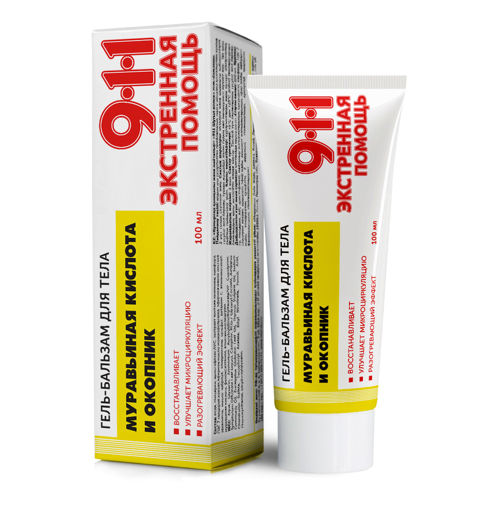 911 "Муравьиная кислота и окопник" Гель-бальзам для суставов разогревающий, 100 мл