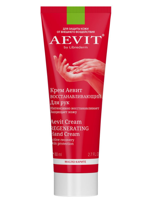 Крем для рук АЕВИТ восстанавливающий предназначен для комплексного ухода за кожей рук: глубоко увлажняет и питает, насыщая витаминами, восстанавливает защитные барьерные функции кожи, оказывает антиок... Показать описаниесидантное и регенерирующее действие, замедляет процесс старения клеток, защищает кожу рук от негативного внешнего воздействия. Подходит для ежедневного применения. Витамины А и Е эффективно увлажняют, ускоряют процессы регенерации, обеспечивают антиоксидантную защиту против воздействия факторов окружающей среды. Масло карите питает, увлажняет, смягчает, успокаивает, защищает кожу, способствует ее восстановлению. Высококонцентрированные экстракты шелковицы и бархата амурского защищают кожу от фотостарения, борются с возрастной пигментацией. СПОСОБ ПРИМЕНЕНИЯ: на чистые сухие руки нанесите небольшое количество крема и распределите массажными движениями по коже рук.