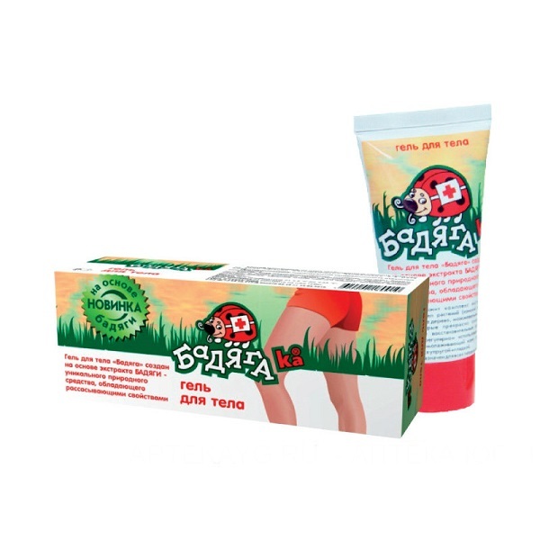 Гель для тела «Бадяга» создан на основе экстракта бадяги – уникального природного средства, обладающего рассасывающими свойствами. Гель содержит комплекс экстрактов и эфирных масел растений (конский к... Показать описаниеаштан, ромашка, чайное дерево, можжевельник, мята, арника), которые прекрасно сочетаются и активизируют восстановительные процессы в коже. Предназначен для помощи при ушибах, синяках, гематомах, а также при постакне и пигментных пятнах.