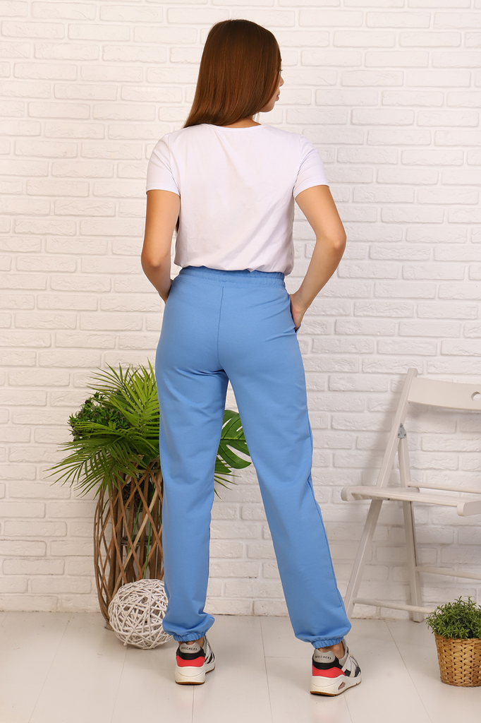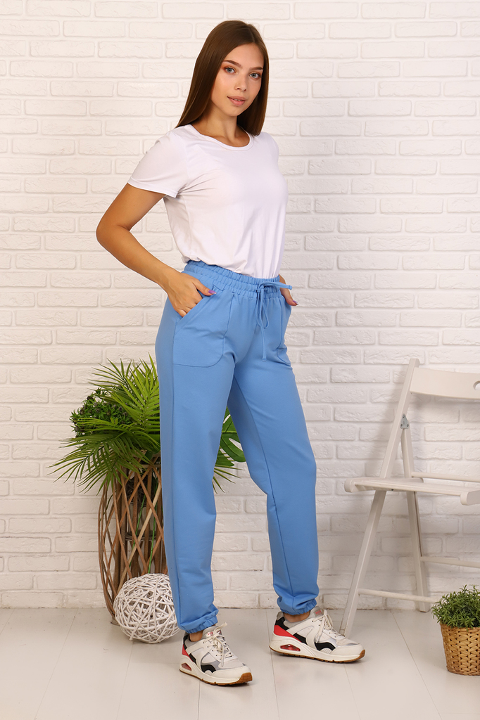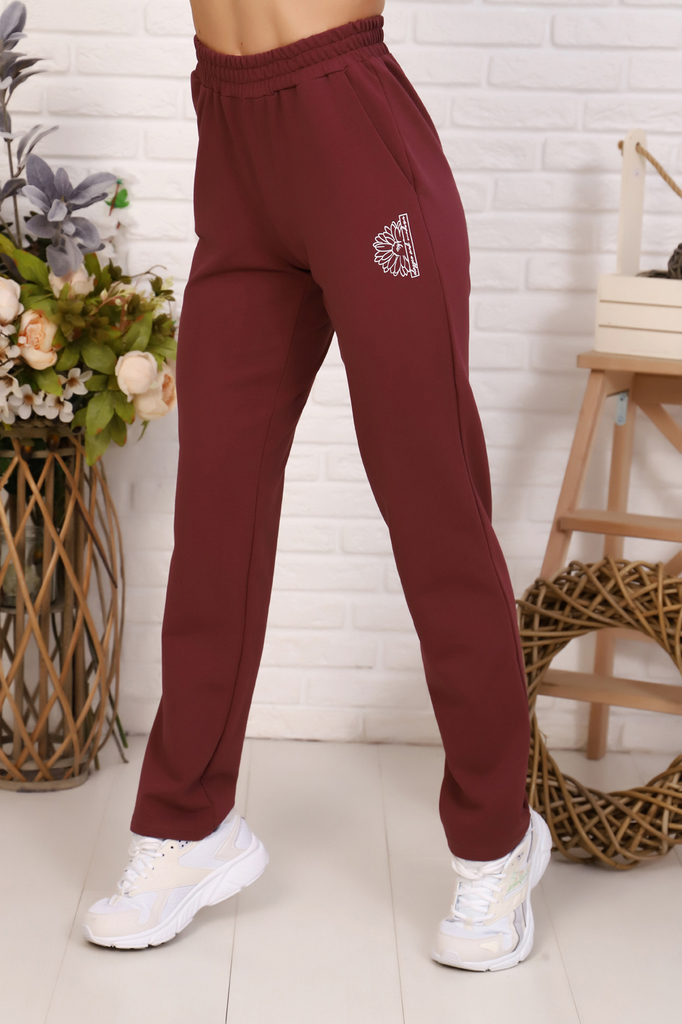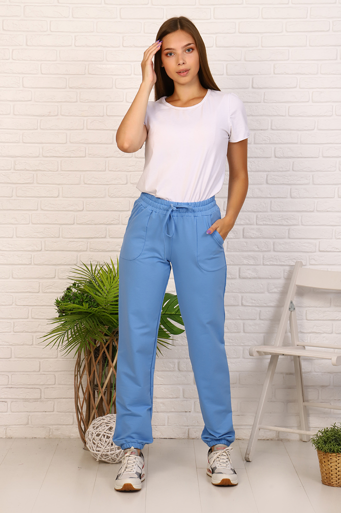 Женские брюки выполнены из футера 2-х нитки, по бокам карманы, небольшой принт в виде цветка, эластичный пояс. К брюкам можно подобрать в пару футболку 11103. В этом случае получится идеальный образ д... Показать описаниеля повседневности.