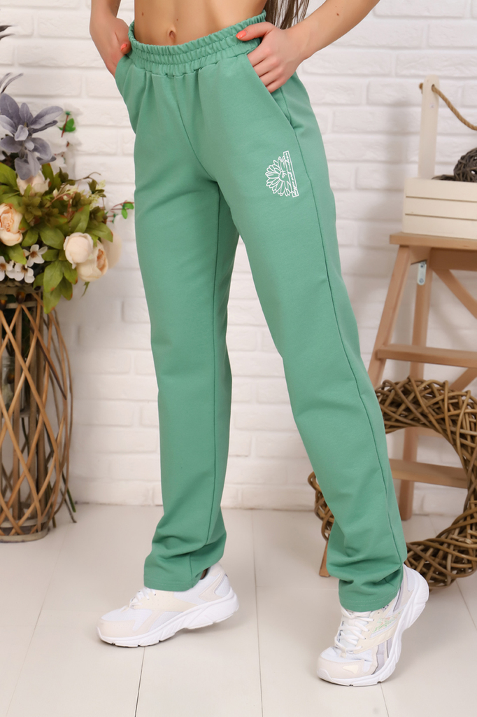 Женские брюки из футера двунитки.  Брюки прямого кроя, с карманами, пояс выполнен на спец. машинке. Комфортные брюки подойдут как для дома, так и для отдыха.