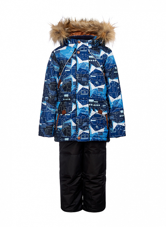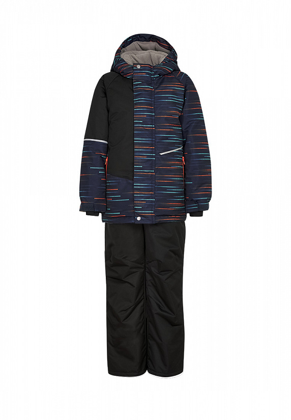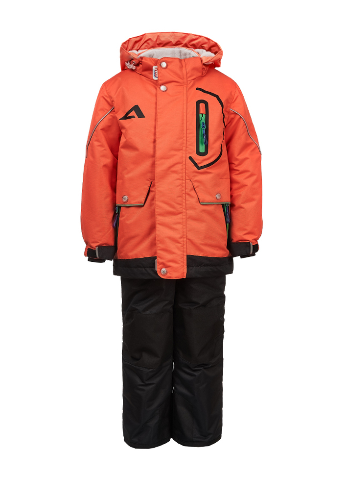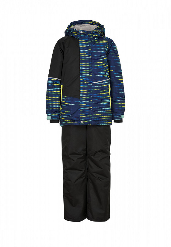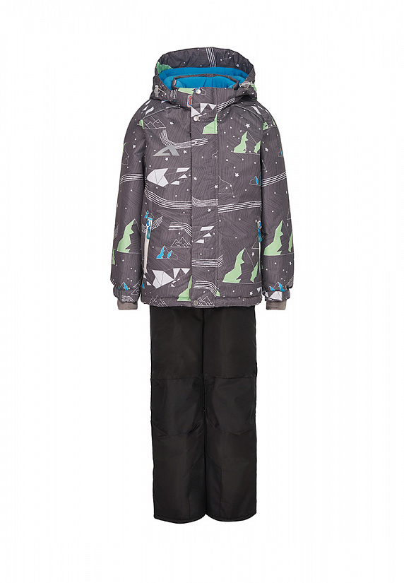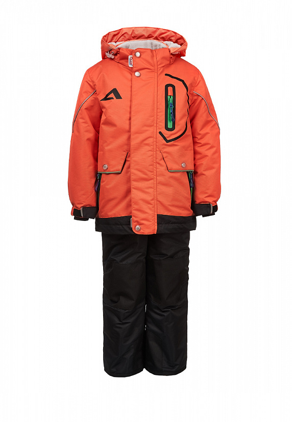 Материал: Ткань верха 100% п/э, водо-грязеотталкивающая пропитка, водонепроницаемость. Утеплитель HOLLOFAN 300/150 г/м2. Подкладка куртки - флис, 100% п/э; в п/к - 100% п/э. Воротник-стойка, капюшон несъемный. Манжеты с отворотом, внутренние трикотажные саморегулирующиеся манжеты. Карманы. П/К: широкие эластичные лямки, резинка по талии, снего-ветрозащитные муфты. СВ-элементы. Т 0...-30 С.