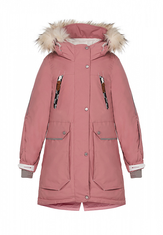 Материал: Ткань верха 42% нейлон, 58% п/э, водо-грязеотталкивающее покрытие TEFLON, пропитка PU. Куртка: утеплитель лебяжий пух искусственный (100% п/э) 300 г/м2, подкладка флис, 100% п/э. П/К: утеплитель HOLLOFAN 200 г/м2, подкладка 100% п/э. Капюшон съемный, с регулировкой объема, мех съемный. Воротник-стойка. Внутренние трикотажные саморегулирующиеся манжеты. Карманы. П/К: широкие эластичные регулируемые лямки, резинка по талии, широкие эластичные регулируемые лямки, резинка по талии, снего-ветрозащитная муфта с силиконовыми штрипками до 104, от 110 - муфта с антискользящей резинкой, без штрипок. СВ-элементы. Т 0...-35 С.