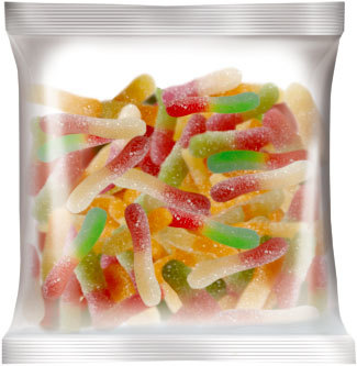 Змейка в кислой посыпке. Мармелад фасованный жевательный, со вкусами персика и апельсина, клубники и банана, черной смородины и лимона в посыпке с легкой кислинкой.
