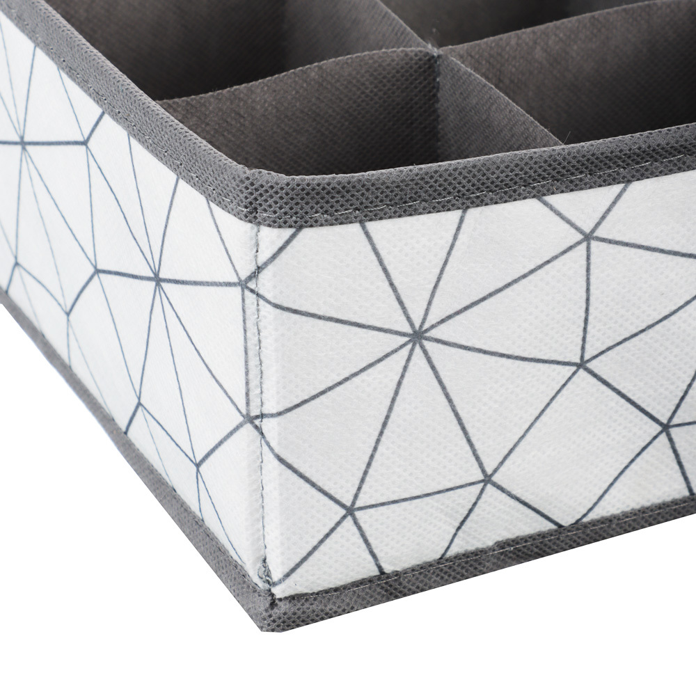 Удобный органайзер с 8 отделениями для хранения одежды и других небольших предметов. Органайзер выполнен из качественного, прочного и при этом дышащего материала. Усиленные боковые стенки не прогибают... Показать описаниеся и прекрасно держат форму, общее пространство разделено на 8 секций, что позволяет грамотно организовать пространство. Размер 33х16х9,5 см. Органайзер удобно располагается в шкафу, на полке или стеллаже. Теперь любая мелочь будет под рукой и в быстром доступе. Благодаря стильному дизайну короб красиво смотрится в интерьере комнаты.