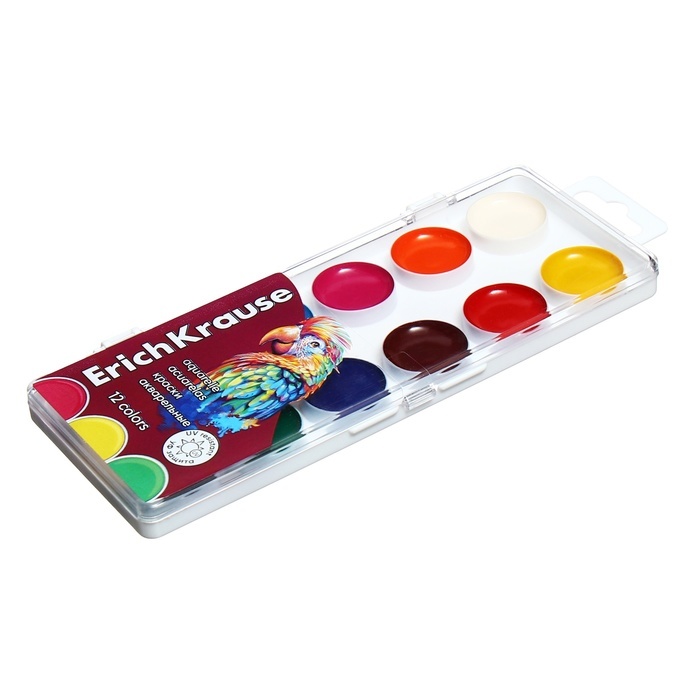 Акварельные краски ErichKrause – оптимальный выбор для школьного рюкзака. Новая уникальная формула акварели позволяет краске значительно легче разводиться водой, хорошо удерживаться кистью и равномерн... Показать описаниео ложиться на бумагу, создавая мягкие переходы цвета. По мере высыхания акварельный рисунок приобретает матовый насыщенный оттенок без посторонних бликов и затеков. Краска наиболее точно передает игру цвета и света на рисунке, создает цветовые комбинации. Для работы с акварелью лучший эффект достигается при использовании акварельной бумаги ErichKrause. Характеристики: * Коллекция: “Pointes”; * Количество цветов: 12; * Смываемость: easy washable; * На водной основе: да; * УФ-фильтр: нет; * Наличие кисти: нет. Акварель - водорастворимая краска, поэтому высыхание (пузырьки, трещины) краски в кювете - не считается браком