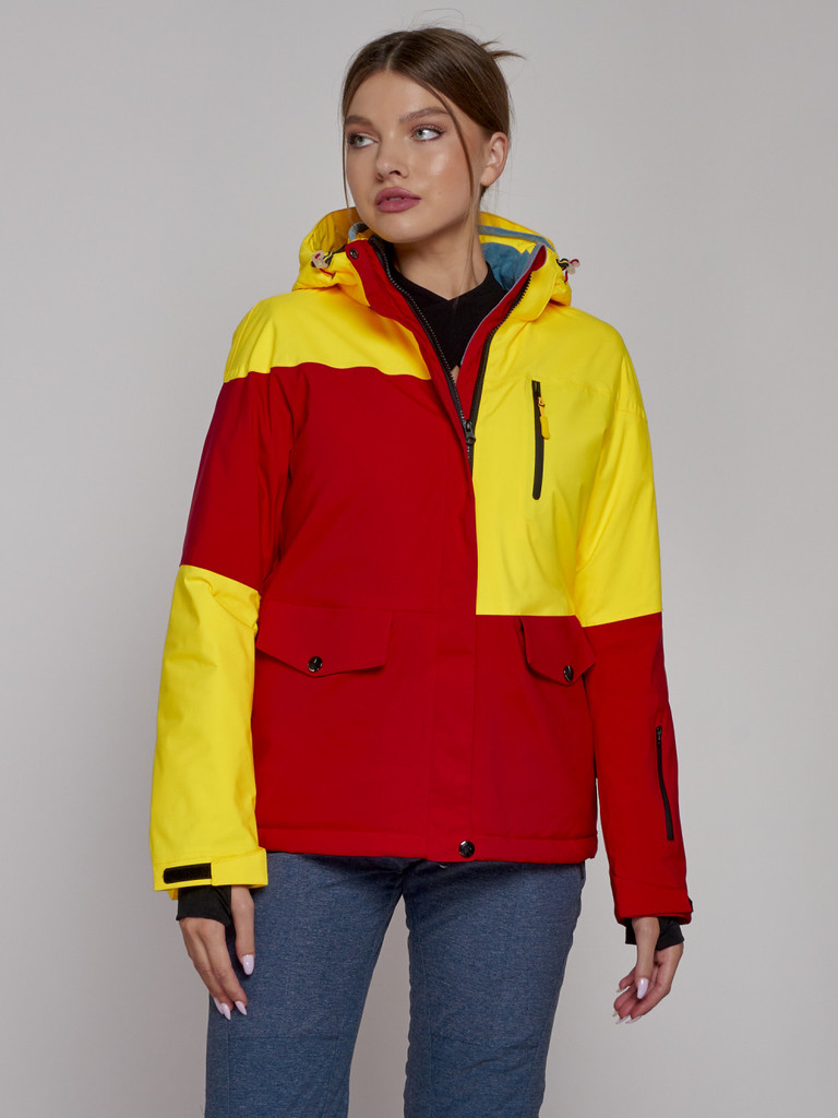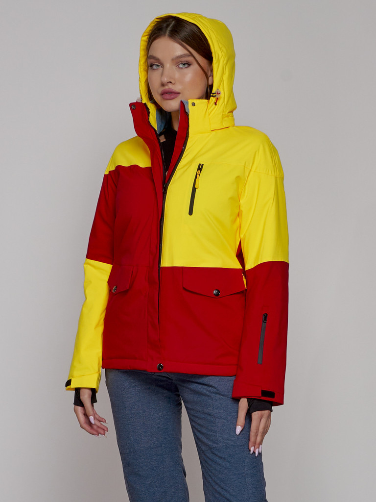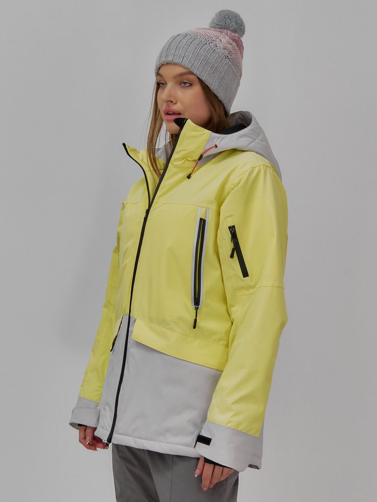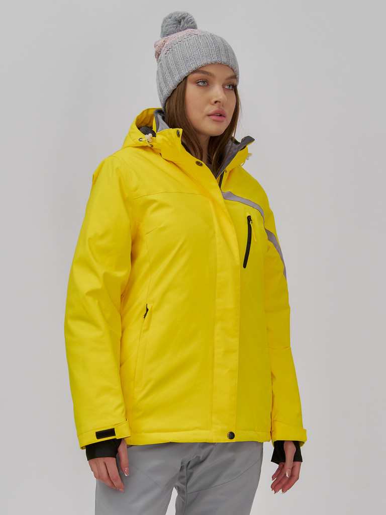 Горнолыжная куртка женская зимняя желтого цвета 027JВопросы по товару