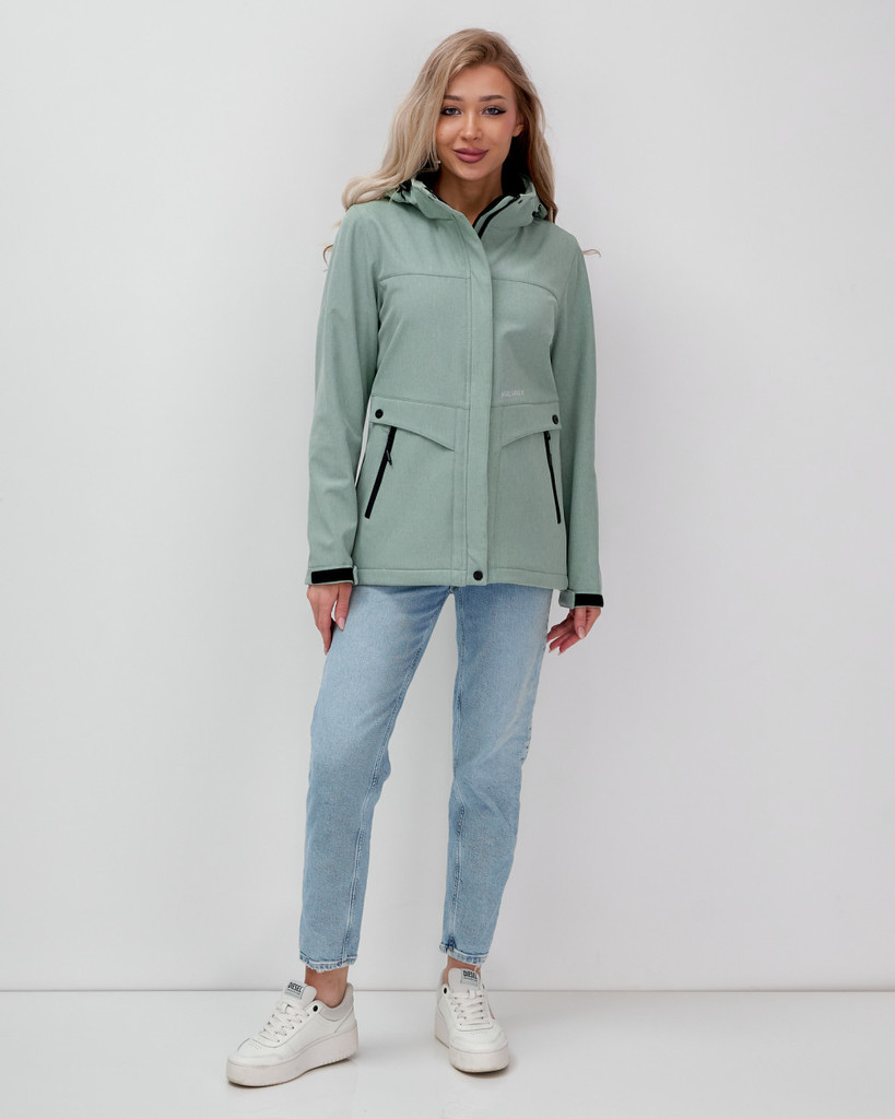 Ветровка спортивная женская с капюшоном softshell бирюзового цвета 9566BrВопросы по товару