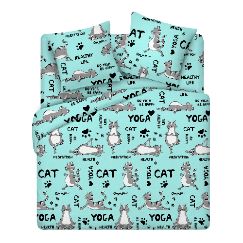 КПБ 'Традиция' 1,5 спальный, поплин, 100% хлопок, пл. 118 гр./кв.м., 'Йога кошки основа' Пододеяльник 146*217, простыня 150*217, наволочка 70*70 (2 шт.)