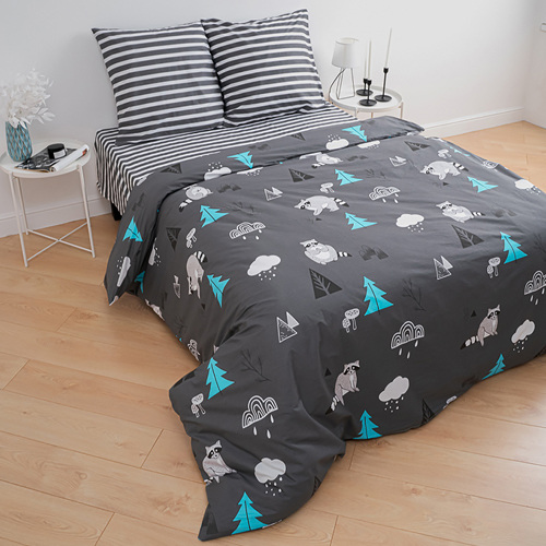 КПБ 'Традиция' 1,5 спальный, поплин, 100% хлопок, пл. 118 гр./кв.м., 'Еноты' Пододеяльник 146*217, простыня 150*217, наволочка 70*70 (2 шт.)