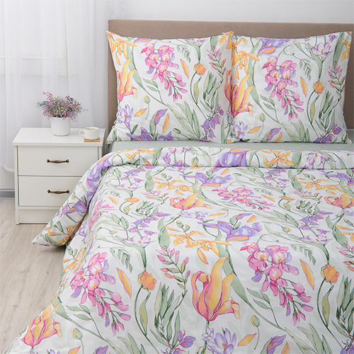 "Pastel" - постельное белье из поплина. Коллекция постельного белья "Pastel" - это 100% хлопковое постельного белье европейского уровня качества. Ткань, используемая для его изготовления, соткана из тончайшей высококачественной хлопчатобумажной пряжи. Она является очень прочной и приятной на ощупь. Сочетание основного рисунка и компаньона никого не оставит равнодушным. Все постельное белье бесшовное. Плотность ткани - 115 г/м2.
