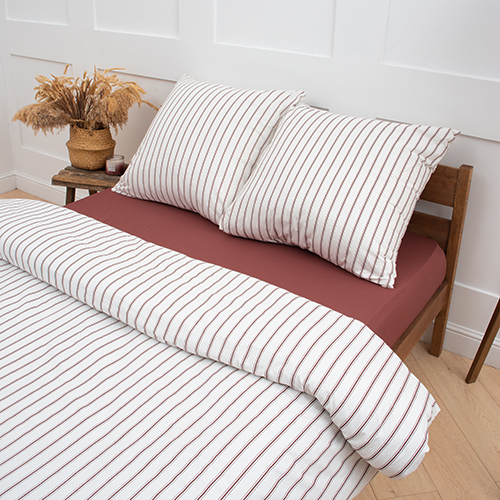 КПБ 'Традиция' 2 спальный с европростыней, поплин, 100% хлопок, пл.118 гр./кв.м 'Полоса абрикос' Пододеяльник 177*217, простыня 217*240, наволочка 70*70 (2 шт.)