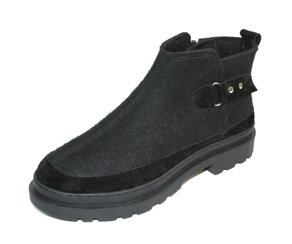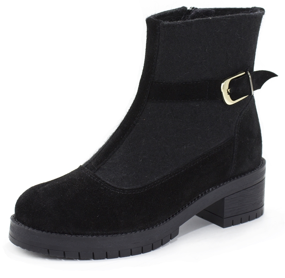 ВНИМАНИЕ: Модель Б-54 Даниелла рассчитана на узкую ногу с невысоким подъемом., маломерит. Полуботинки Даниелла - повседневная зимняя обувь с войлочным верхом (овечья шерсть 100%). Декорированы натурал... Показать описаниеьной кожей - спило велюром. Они имеют небольшое декоративное дополнение в виде ремешка с металлической пряжкой на щиколотке. Функциональная молния расположена сбоку. Модель имеет невысокий устойчивый каблук и толстую подошву, обеспечивающую хорошую амортизацию при ходьбе. Дополнительная вкладная стелька (шерсть 100%) обеспечит защиту ног от холода.