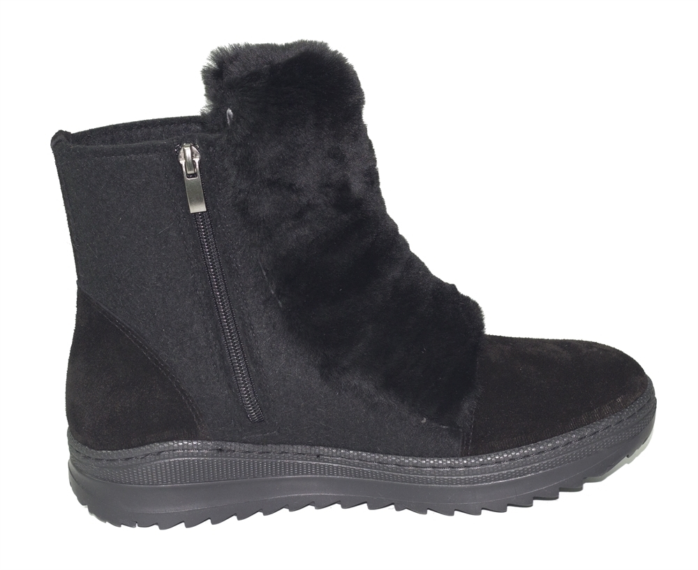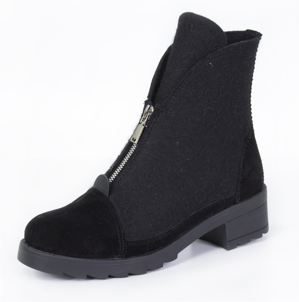 Полуботинки Гретта - повседневная зимняя обувь с войлочным верхом, с отделкой из натуральной кожи, с застежкой молнией и с декоративным ремешком на невысоком устойчивом каблуке.