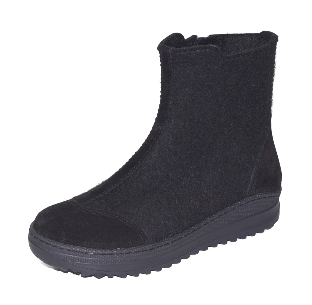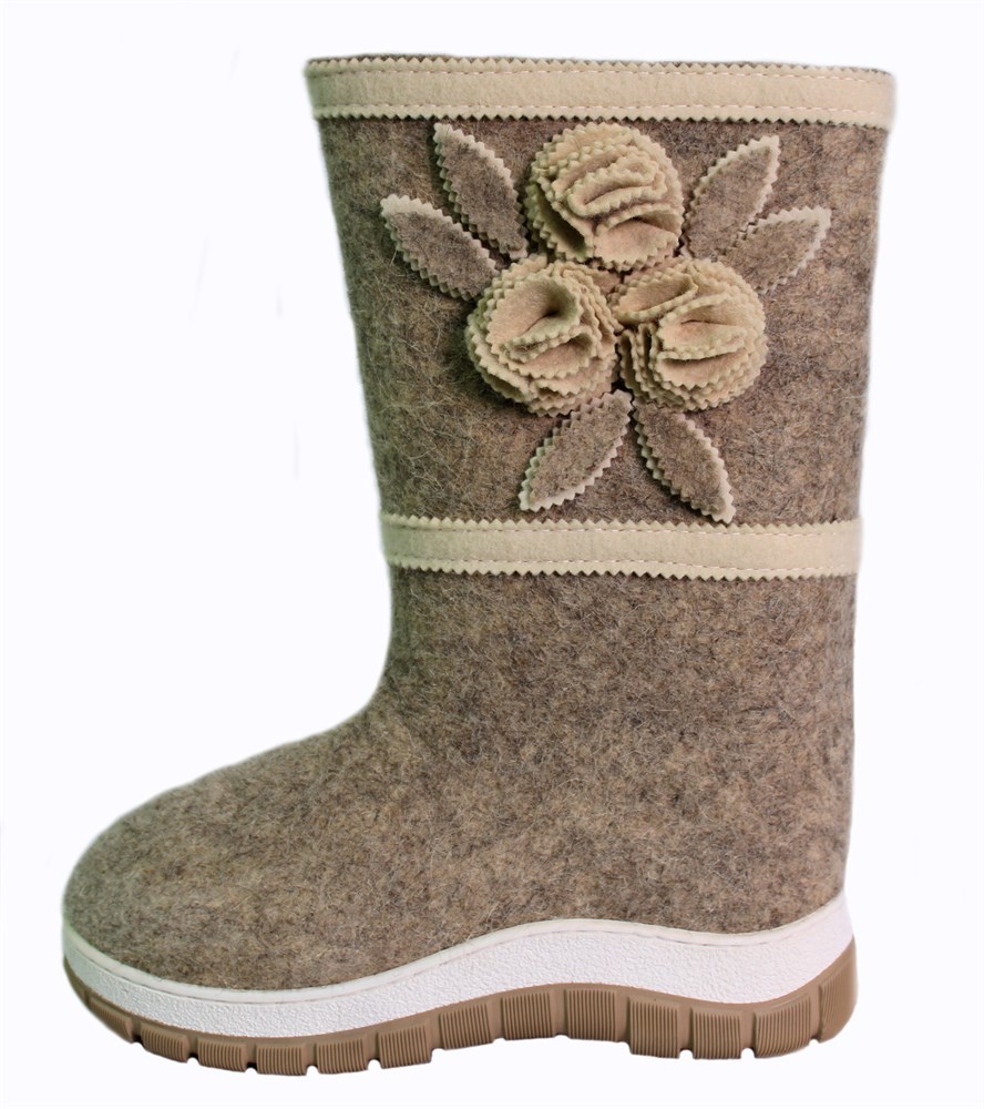 Внимание: Модель рассчитана на среднюю ногу со средним подъемом. Ботинки Дорес - повседневная зимняя обувь с комбинированным войлочным верхом из 100% натуральной овечьей шерсти. Модель декорирована на... Показать описаниетуральной кожей спилок велюром. Застежка молния расположена с внутренней стороны обуви. Толстая подошва ТЭП и дополнительная стелька из войлока сохранит ноги в тепле, а наличие протектора позволит уверено передвигаться.
