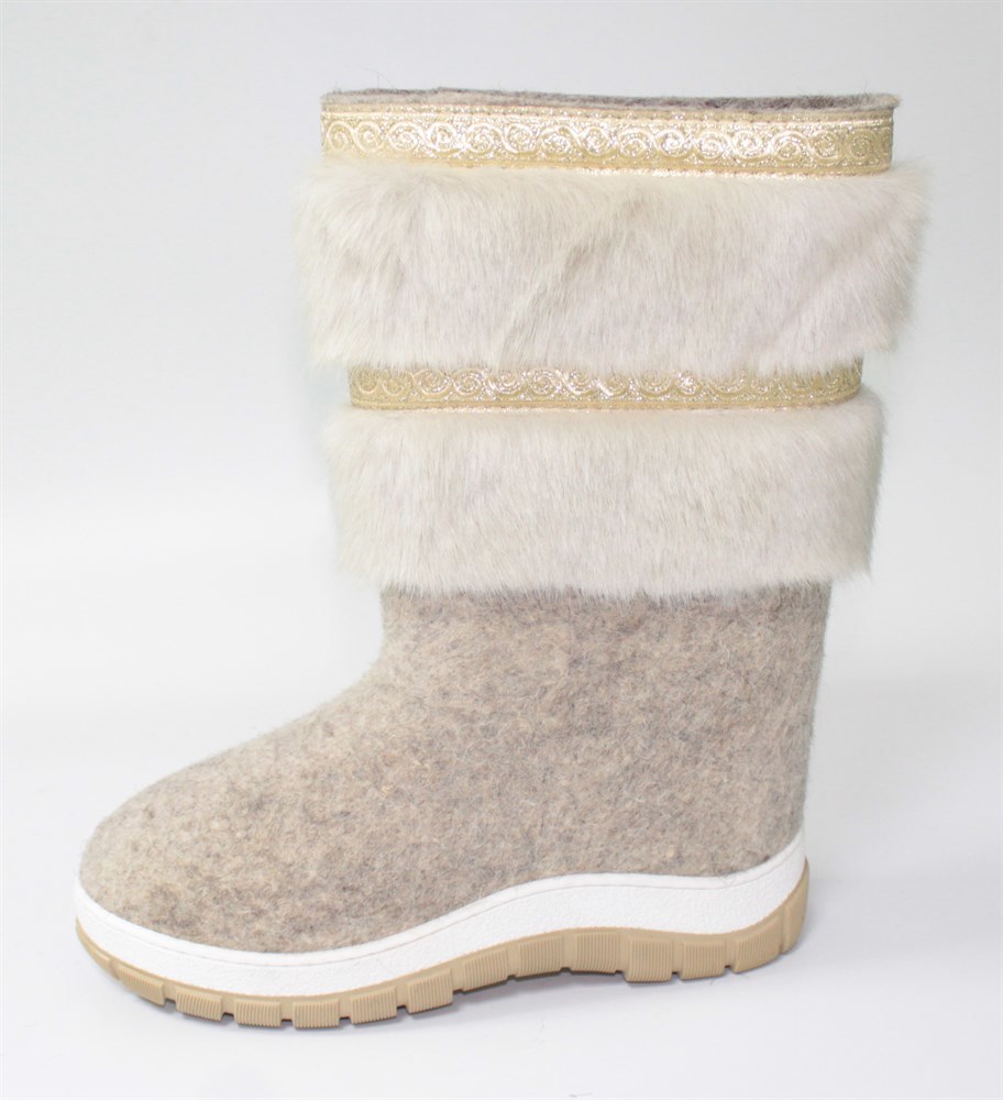 Внимание: Данная модель немного большемерит. Рассчитана для средней ноги со средним подъемом. Берцы женские Марго изготовлены из 100% овечьей шерсти. Застежка - шнуровка, по краю отделанная искуственн... Показать описаниеым мехом, обеспечивает хорошую фиксацию ноги. Высокий профиль и двойная стелька из войлока не даст вашим ногам замерзнуть. В них всегда комфортно и в мороз, и в оттепель. Подошва из износостойкого ТЭП с протектором обеспечит отличное сцепление с любой поверхностью и не даст Вам подскользнуться.