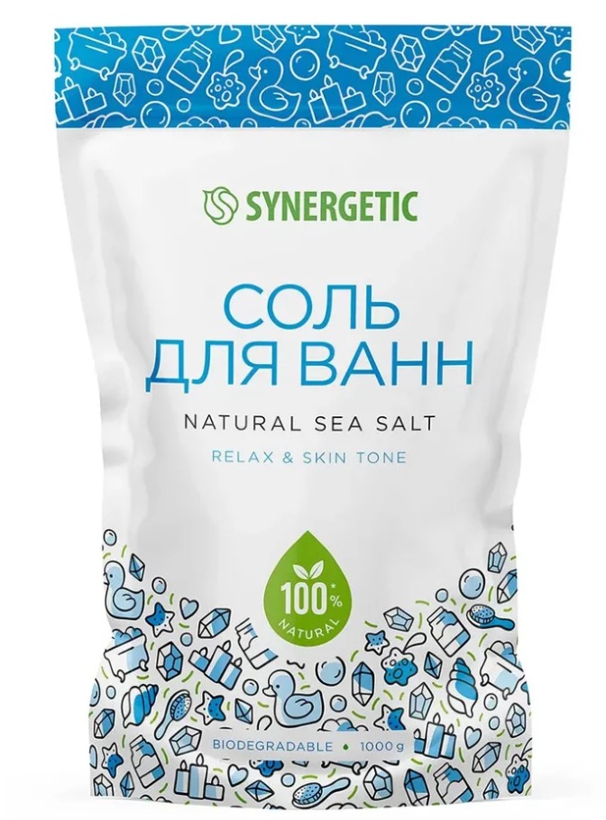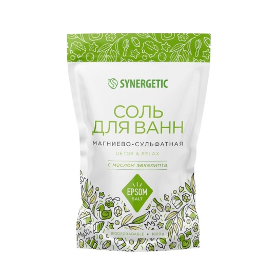 SYNERGETIC 1000г Соль для ванн Магниево-сульфатная с Маслом ЭвкалиптаВопросы по товару