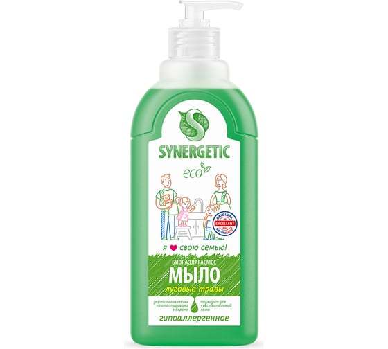 SYNERGETIC 500мл Мыло жидкое биоразлогаемое для мытья рук и тела Луговые травы*14Вопросы по товару