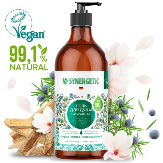 SYNERGETIC 750мл Гель для душа Сандал и ягоды можжевельника натуральный биоразлагаемый гель для душаВопросы по товару