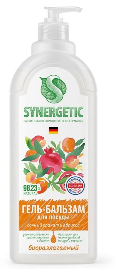 SYNERGETIC 1000мл Гель-бальзам для мытья посуды Сочный гранат и абрикосВопросы по товару