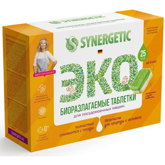 SYNERGETIC 25шт Таблетки для посудомоечных машин бесфосфатныеВопросы по товару