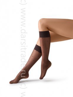 Женские полуматовые эластичные гольфы 20 den с рисунком «горошек». Удобная резинка «ТОП комфорт» обеспечивает превосходное облегание - гольфы отлично ощущаются на ноге. Невидимый усиленный мысок отлич... Показать описаниено сочетается с легкой, открытой обувью - босоножками балетками и туфлями.