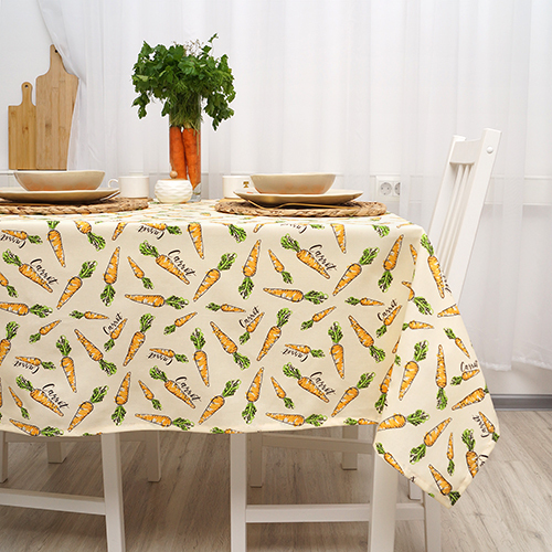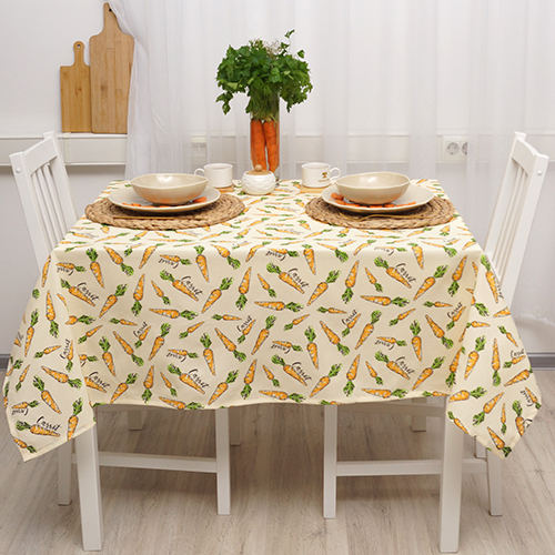 Ткань: Рогожка Состав: 100% хлопок Дизайн: Морковки Линейка: Радушная хозяйка (Традиция) Тематика: Продукты Цветовая гама: Яркие тона Комплектация: Скатерть 145х145 - 1 шт. Упаковка: Пакет, гофровстав... Показать описаниека + фирменный вкладыш Страна: Россия Скатерть "Радушная хозяйка" 145х145 из набивной рогожки плотностью 160 гр./кв.м. Практична и проста в уходе. Рогожка обладает высокой впитываемостью и износоустойчивостью. Скатерть обрабатывается швом в подгибку, с закрытым срезом 1,5 см, с евроуголками, нитки в цвет ткани. Пошив в строгом соответствии с ГОСТ. Современный тренд в дизайне - экологичность окружающих нас предметов. Колористика в природных оттенках с лёгкой нотой винтажа раскрывает глубину дизайна и натуральность цветов. Дизайн "Морковки" входит в постоянную коллекцию "Радушная хозяйка (Традиция)".