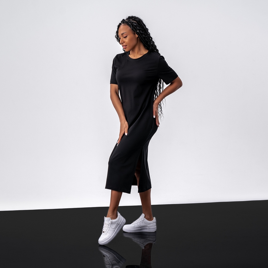 Платье с коротким втачным рукавом и разрезами по боковым швам.Материал: Cotton - материал из натуральных волокон, который удобен в носке, быстро впитывает и отводит от тела влагу, хорошо пропускает во... Показать описаниездух и не раздражает кожу. Хлопок гигиеничен, обладает устойчивостью к истиранию и разрыву, помогает балансировать температуру для избегания перегрева. В стирке требует более бережного обращения. Рекомендуется утюжить и стирать вывернутыми (особенно изделия с принтом) на изнаночную сторону при температуре 30 градусов.ВНИМАНИЕ! Оттенок цвета ткани может отличаться в зависимости от партии товара, также могут быть незначительные отличия цветовых оттенков разных деталей одного изделия. Производители ткани не считают это браком, объясняя это технологическими особенностями производства. Цветовая гамма товара может быть изменена (в рамках допуска) производителем трикотажных полотен в зависимости от серии поставки без предварительного уведомления.В связи с этим, подбор комплекта одежды в одном оттенке возможен только в процессе формирования единого заказа.Состав: 92% Cotton, 8% Elastane