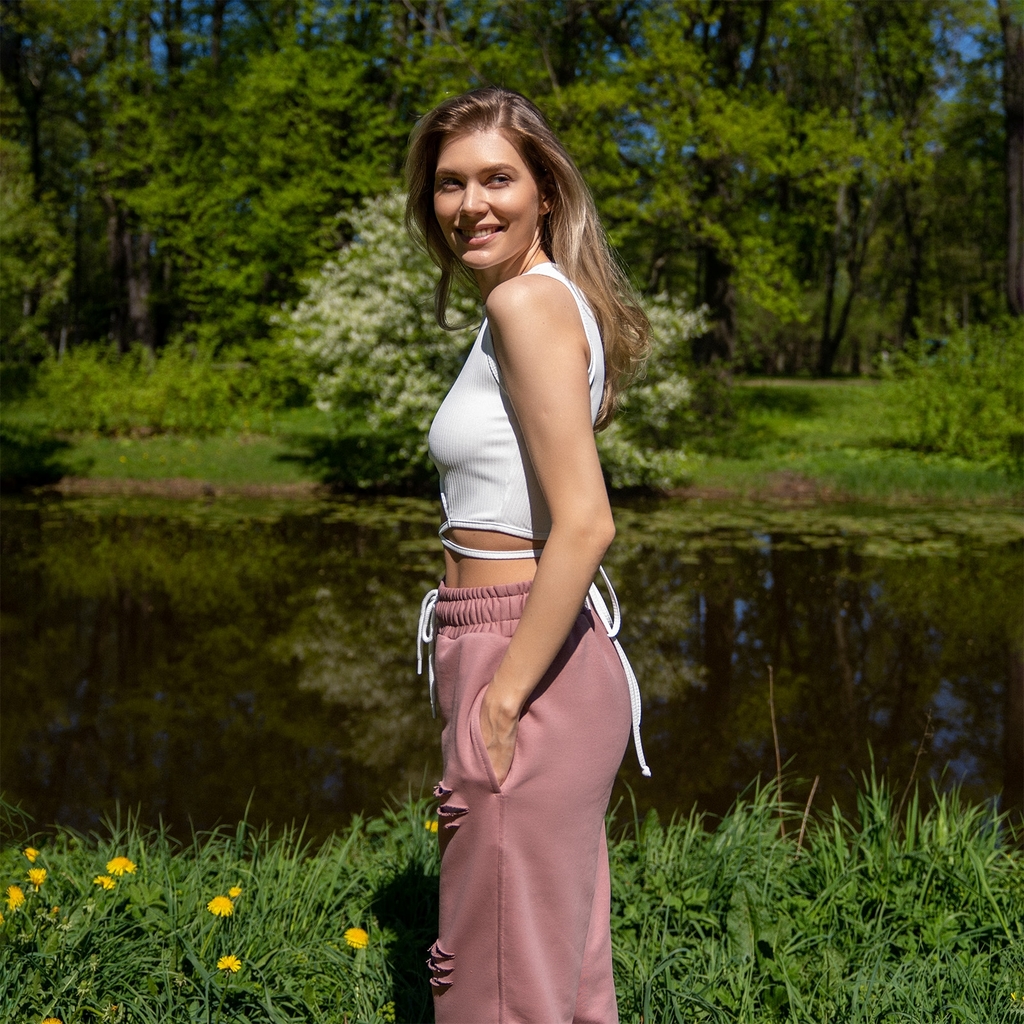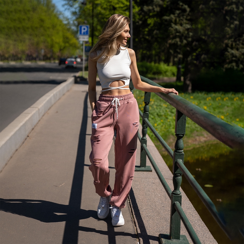 Женские спортивные брюки с декоративными разрезами.Материал: Cotton - материал из натуральных волокон, который удобен в носке, быстро впитывает и отводит от тела влагу, хорошо пропускает воздух и не р... Показать описаниеаздражает кожу. Хлопок гигиеничен, обладает устойчивостью к истиранию и разрыву, помогает балансировать температуру для избегания перегрева. В стирке требует более бережного обращения. Рекомендуется утюжить и стирать вывернутыми (особенно изделия с принтом) на изнаночную сторону при температуре 30 градусов.ВНИМАНИЕ! Оттенок цвета ткани может отличаться в зависимости от партии товара, также могут быть незначительные отличия цветовых оттенков разных деталей одного изделия. Производители ткани не считают это браком, объясняя это технологическими особенностями производства. Цветовая гамма товара может быть изменена (в рамках допуска) производителем трикотажных полотен в зависимости от серии поставки без предварительного уведомления.В связи с этим, подбор комплекта одежды в одном оттенке возможен только в процессе формирования единого заказа.Состав: 92% Cotton, 8% ElastaneFrench terry б/н - футер 3-х нитка без начеса. Одна из самых плотных разновидностей футера. Тёплый, приятный на ощупь материал с гладкой лицевой стороной и мягкой изнаночной стороной.В стирке требует более бережного обращения. Рекомендуется утюжить и стирать вывернутыми (особенно изделия с принтом) на изнаночную сторону при температуре 30 градусов.ВНИМАНИЕ! Оттенок цвета ткани может отличаться в зависимости от партии товара, также могут быть незначительные отличия цветовых оттенков разных деталей одного изделия. Производители ткани не считают это браком, объясняя это технологическими особенностями производства. Цветовая гамма товара может быть изменена (в рамках допуска) производителем трикотажных полотен в зависимости от серии поставки без предварительного уведомления.В связи с этим, подбор комплекта одежды в одном оттенке возможен только в процессе формирования единого заказа.Состав: 70% Cotton 30% Polyester