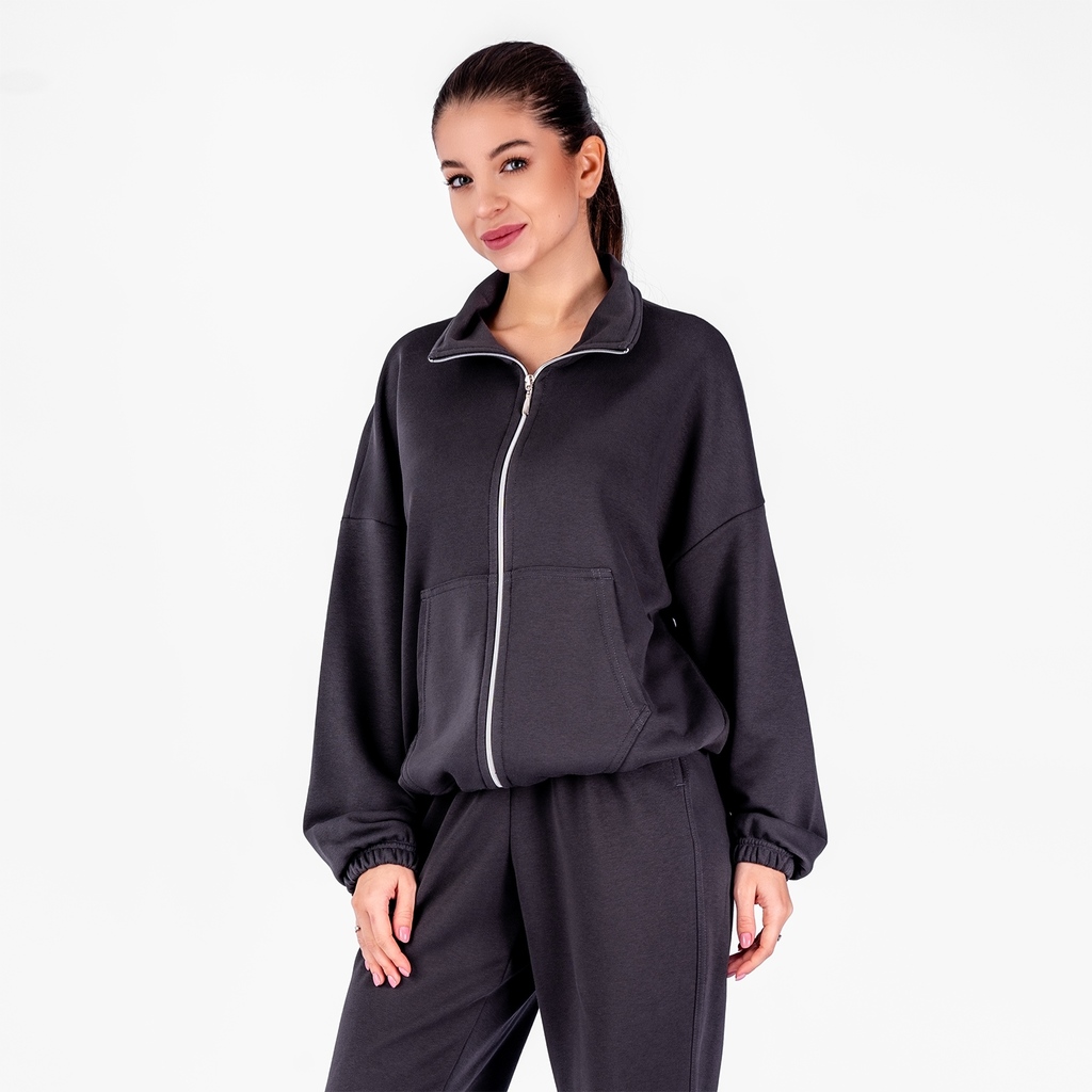 Женская куртка на молнии, с воротником-стойкой и карманом "кенгуру".Материал: French terry б/н - футер 3-х нитка без начеса. Одна из самых плотных разновидностей футера. Тёплый, приятный на ощупь мате... Показать описаниериал с гладкой лицевой стороной и мягкой изнаночной стороной.В стирке требует более бережного обращения. Рекомендуется утюжить и стирать вывернутыми (особенно изделия с принтом) на изнаночную сторону при температуре 30 градусов.ВНИМАНИЕ! Оттенок цвета ткани может отличаться в зависимости от партии товара, также могут быть незначительные отличия цветовых оттенков разных деталей одного изделия. Производители ткани не считают это браком, объясняя это технологическими особенностями производства. Цветовая гамма товара может быть изменена (в рамках допуска) производителем трикотажных полотен в зависимости от серии поставки без предварительного уведомления.В связи с этим, подбор комплекта одежды в одном оттенке возможен только в процессе формирования единого заказа.Состав: 70% Cotton 30% Polyester