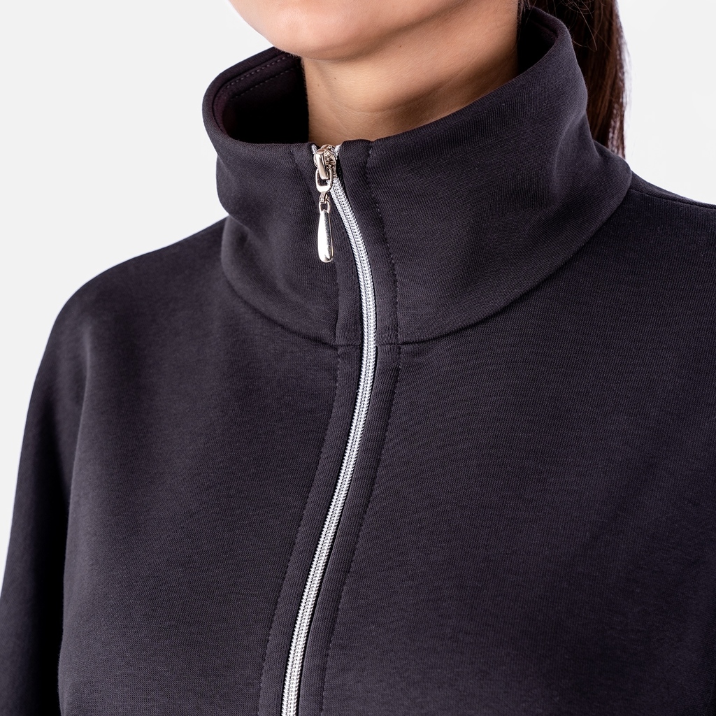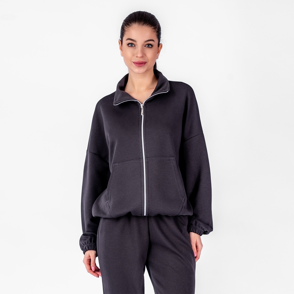 Женская толстовка на молнии, воротник-стойка, карманы в рельефах на переде, с контрастными кантами по рукаву.Материал: French terry с/н - футер 3-х нитка с начесом. Одна из самых плотных разновидносте... Показать описанией футера. Тёплый, приятный на ощупь материал с гладкой лицевой стороной и мягким, толстым ворсом с изнанки.В стирке требует более бережного обращения. Рекомендуется утюжить и стирать вывернутыми (особенно изделия с принтом) на изнаночную сторону при температуре 30 градусов.ВНИМАНИЕ! Оттенок цвета ткани может отличаться в зависимости от партии товара, также могут быть незначительные отличия цветовых оттенков разных деталей одного изделия. Производители ткани не считают это браком, объясняя это технологическими особенностями производства. Цветовая гамма товара может быть изменена (в рамках допуска) производителем трикотажных полотен в зависимости от серии поставки без предварительного уведомления.В связи с этим, подбор комплекта одежды в одном оттенке возможен только в процессе формирования единого заказа.Состав: 70% Cotton 30% Polyester