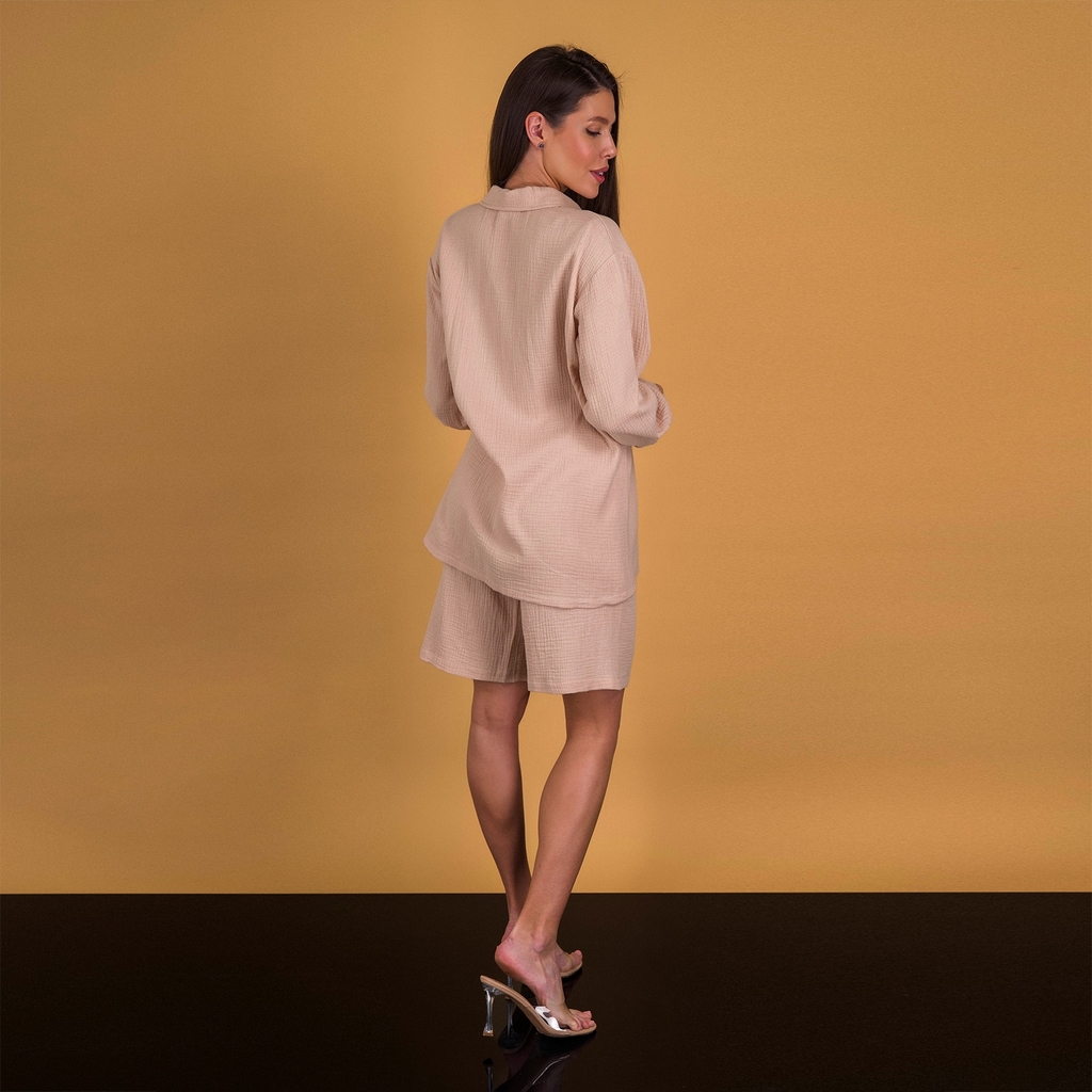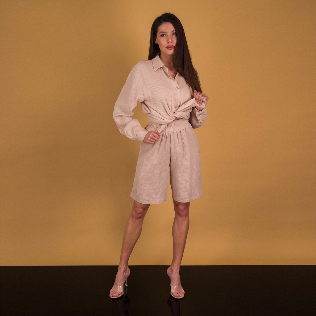 Женская рубашка из муслина с рубашечным воротником и застежкой на петли и пуговицы.Материал: Муслин - очень тонкая, воздушная, легкая ткань, изготовленная из хлопковых волокон. Имеет рельефную и прият... Показать описаниеную на ощупь поверхность. Ткань обладает хорошей воздухопроницаемостью и отличной влагопоглощающей способностью. Муслин прочен и долговечен при правильном уходе.ВНИМАНИЕ: обязателен только мягкий режим стирки. Чтобы предотвратить усадку и деформацию изделий, сушить на воздухе, или в сушильной машине при низкой температуре!Состав: 100% Cotton