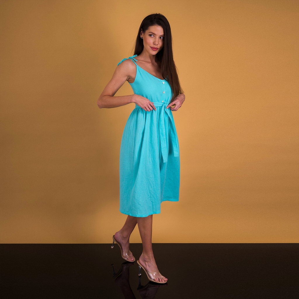 Женский сарафан на бретелях, с центральной застежкой на пуговицы.Материал: Муслин - очень тонкая, воздушная, легкая ткань, изготовленная из хлопковых волокон. Имеет рельефную и приятную на ощупь повер... Показать описаниехность. Ткань обладает хорошей воздухопроницаемостью и отличной влагопоглощающей способностью. Муслин прочен и долговечен при правильном уходе.ВНИМАНИЕ: обязателен только мягкий режим стирки. Чтобы предотвратить усадку и деформацию изделий, сушить на воздухе, или в сушильной машине при низкой температуре!Состав: 100% Cotton