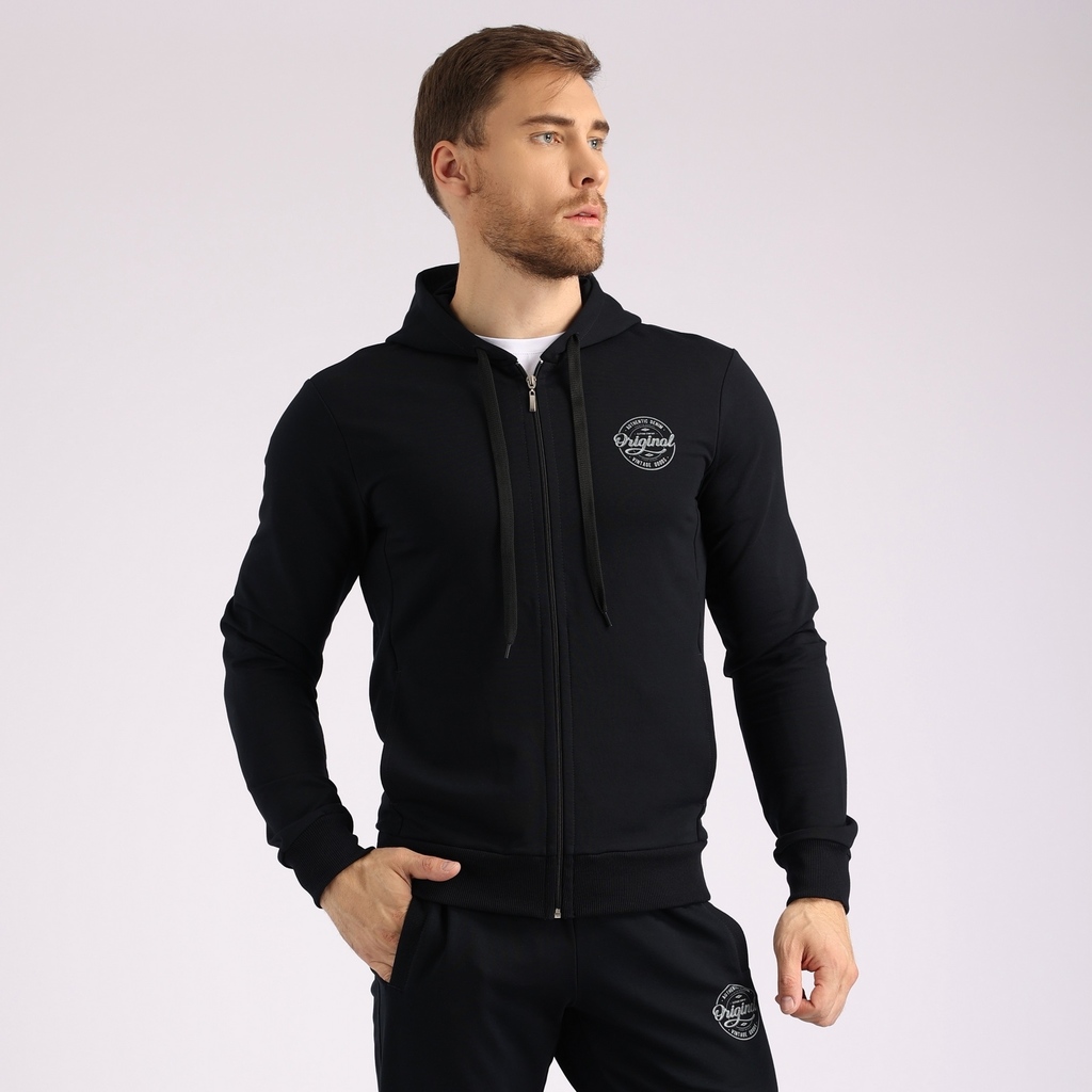 Мужская толстовка на молнии, с капюшоном и карманами.Материал: French terry б/н - футер 3-х нитка без начеса. Одна из самых плотных разновидностей футера. Тёплый, приятный на ощупь материал с гладкой ... Показать описаниелицевой стороной и мягкой изнаночной стороной.В стирке требует более бережного обращения. Рекомендуется утюжить и стирать вывернутыми (особенно изделия с принтом) на изнаночную сторону при температуре 30 градусов.ВНИМАНИЕ! Оттенок цвета ткани может отличаться в зависимости от партии товара, также могут быть незначительные отличия цветовых оттенков разных деталей одного изделия. Производители ткани не считают это браком, объясняя это технологическими особенностями производства. Цветовая гамма товара может быть изменена (в рамках допуска) производителем трикотажных полотен в зависимости от серии поставки без предварительного уведомления.В связи с этим, подбор комплекта одежды в одном оттенке возможен только в процессе формирования единого заказа.Состав: 70% Cotton 30% Polyester