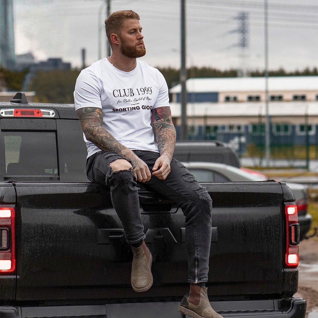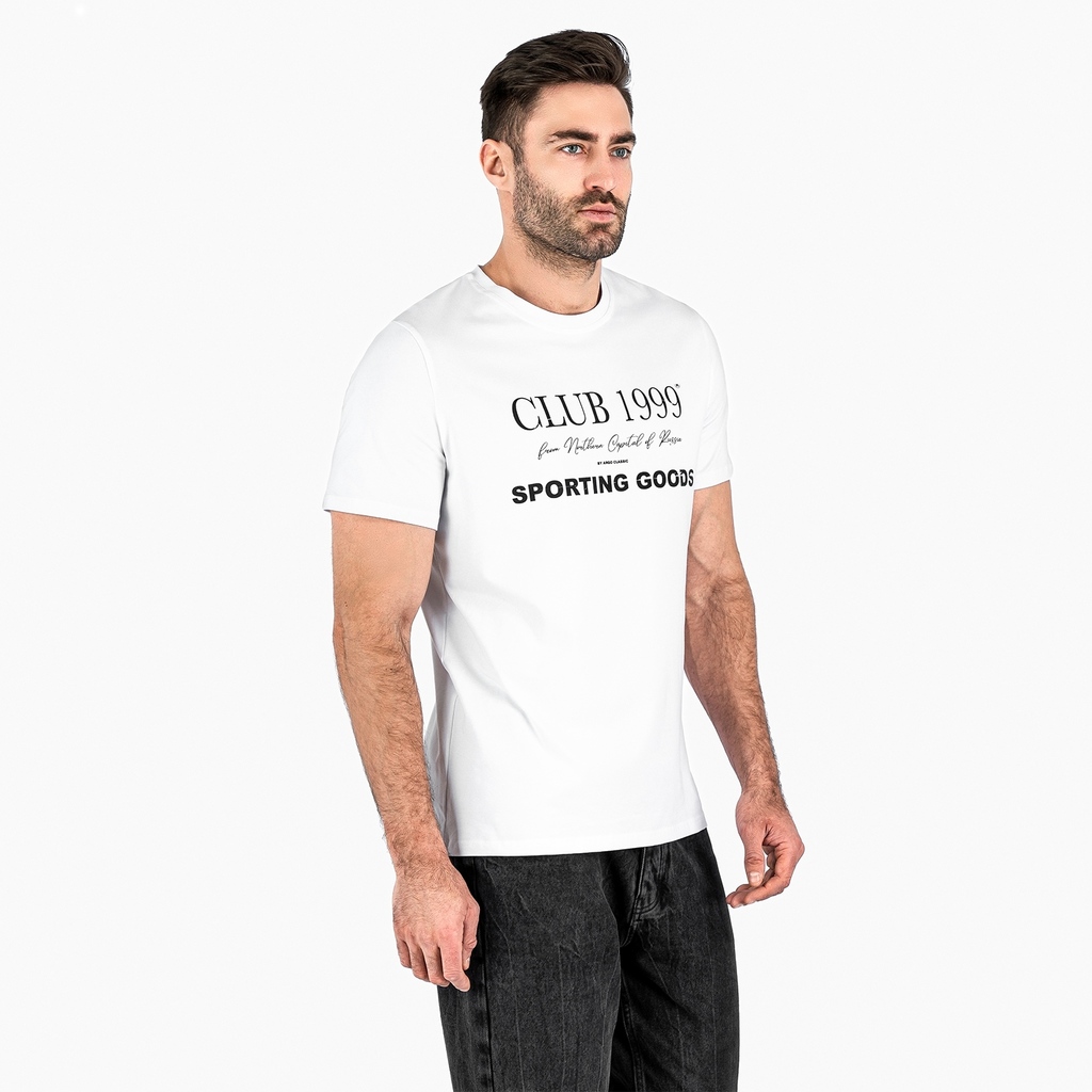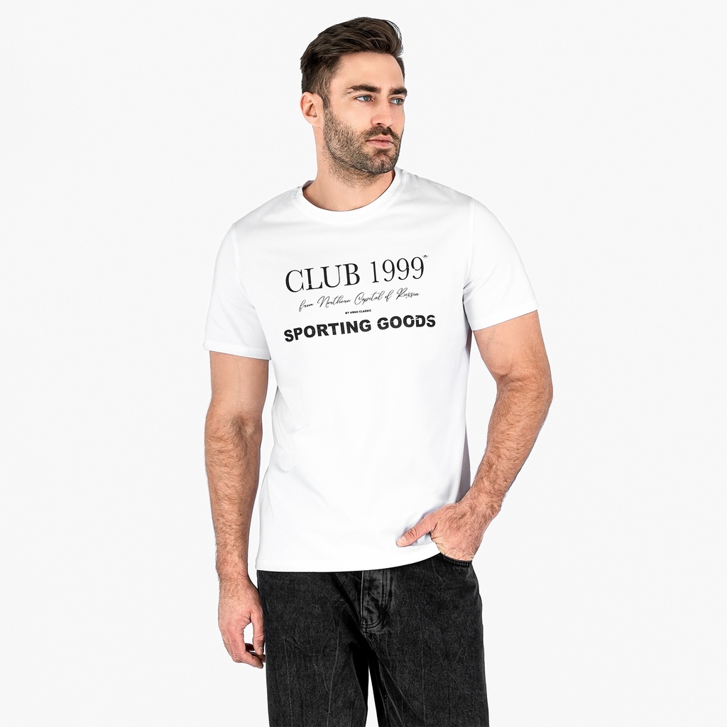 Мужская футболка с круглым вырезом горловины (принт "Club 1999").Материал: Cotton - материал из натуральных волокон, который удобен в носке, быстро впитывает и отводит от тела влагу, хорошо пропускает... Показать описание воздух и не раздражает кожу. Хлопок гигиеничен, обладает устойчивостью к истиранию и разрыву, помогает балансировать температуру для избегания перегрева. В стирке требует более бережного обращения. Рекомендуется утюжить и стирать вывернутыми (особенно изделия с принтом) на изнаночную сторону при температуре 30 градусов.ВНИМАНИЕ! Оттенок цвета ткани может отличаться в зависимости от партии товара, также могут быть незначительные отличия цветовых оттенков разных деталей одного изделия. Производители ткани не считают это браком, объясняя это технологическими особенностями производства. Цветовая гамма товара может быть изменена (в рамках допуска) производителем трикотажных полотен в зависимости от серии поставки без предварительного уведомления.В связи с этим, подбор комплекта одежды в одном оттенке возможен только в процессе формирования единого заказа.Состав: 92% Cotton, 8% Elastane