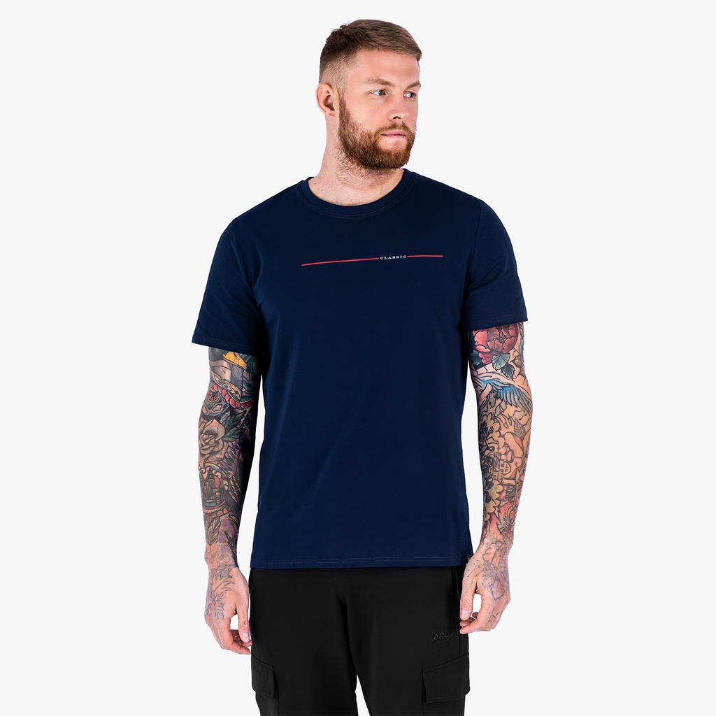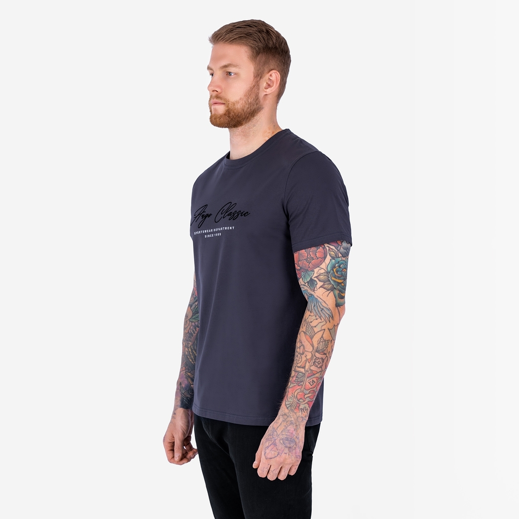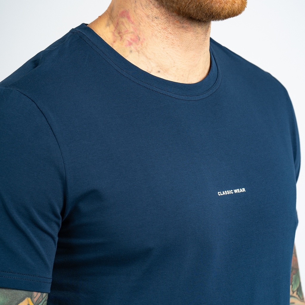 Футболка с круглым вырезом горловины (принт "Classic Wear").Материал: Cotton - материал из натуральных волокон, который удобен в носке, быстро впитывает и отводит от тела влагу, хорошо пропускает возд... Показать описаниеух и не раздражает кожу. Хлопок гигиеничен, обладает устойчивостью к истиранию и разрыву, помогает балансировать температуру для избегания перегрева. В стирке требует более бережного обращения. Рекомендуется утюжить и стирать вывернутыми (особенно изделия с принтом) на изнаночную сторону при температуре 30 градусов.ВНИМАНИЕ! Оттенок цвета ткани может отличаться в зависимости от партии товара, также могут быть незначительные отличия цветовых оттенков разных деталей одного изделия. Производители ткани не считают это браком, объясняя это технологическими особенностями производства. Цветовая гамма товара может быть изменена (в рамках допуска) производителем трикотажных полотен в зависимости от серии поставки без предварительного уведомления.В связи с этим, подбор комплекта одежды в одном оттенке возможен только в процессе формирования единого заказа.Состав: 92% Cotton, 8% Elastane