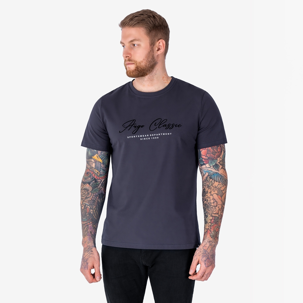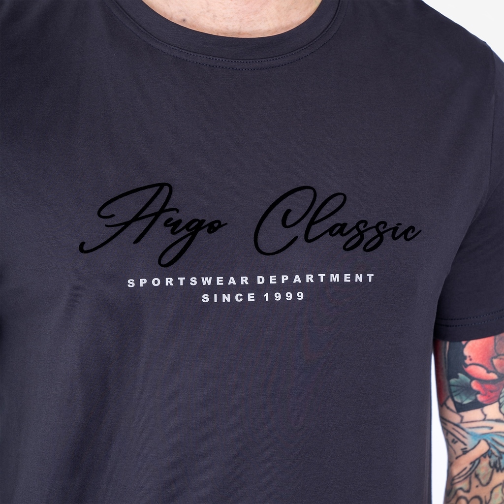 Мужская футболка с круглым вырезом горловины (принт "Argo Classic Sportswear Department").Материал: Cotton - материал из натуральных волокон, который удобен в носке, быстро впитывает и отводит от тела... Показать описание влагу, хорошо пропускает воздух и не раздражает кожу. Хлопок гигиеничен, обладает устойчивостью к истиранию и разрыву, помогает балансировать температуру для избегания перегрева. В стирке требует более бережного обращения. Рекомендуется утюжить и стирать вывернутыми (особенно изделия с принтом) на изнаночную сторону при температуре 30 градусов.ВНИМАНИЕ! Оттенок цвета ткани может отличаться в зависимости от партии товара, также могут быть незначительные отличия цветовых оттенков разных деталей одного изделия. Производители ткани не считают это браком, объясняя это технологическими особенностями производства. Цветовая гамма товара может быть изменена (в рамках допуска) производителем трикотажных полотен в зависимости от серии поставки без предварительного уведомления.В связи с этим, подбор комплекта одежды в одном оттенке возможен только в процессе формирования единого заказа.Состав: 92% Cotton, 8% Elastane