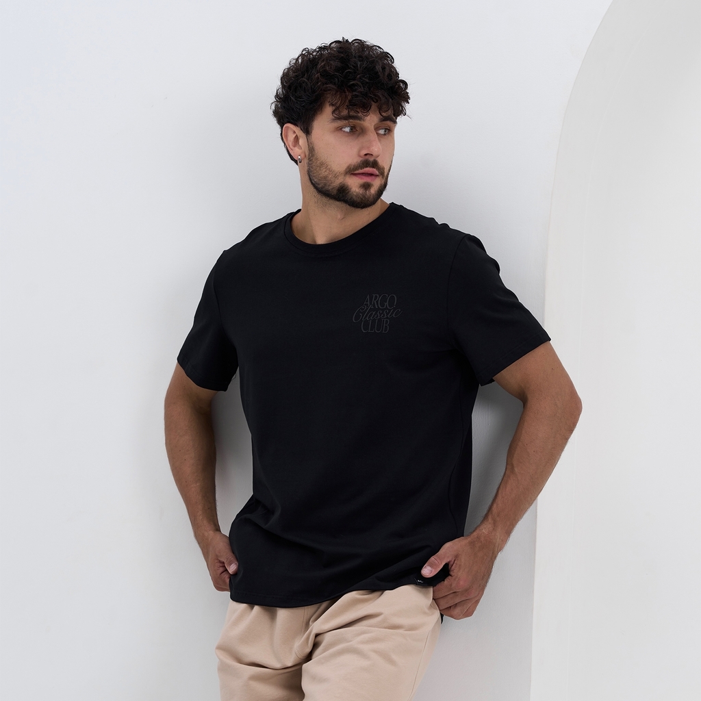 Футболка с круглым вырезом горловины (принт "ARGO CLASSIC").Материал: Cotton - материал из натуральных волокон, который удобен в носке, быстро впитывает и отводит от тела влагу, хорошо пропускает возд... Показать описаниеух и не раздражает кожу. Хлопок гигиеничен, обладает устойчивостью к истиранию и разрыву, помогает балансировать температуру для избегания перегрева. В стирке требует более бережного обращения. Рекомендуется утюжить и стирать вывернутыми (особенно изделия с принтом) на изнаночную сторону при температуре 30 градусов.ВНИМАНИЕ! Оттенок цвета ткани может отличаться в зависимости от партии товара, также могут быть незначительные отличия цветовых оттенков разных деталей одного изделия. Производители ткани не считают это браком, объясняя это технологическими особенностями производства. Цветовая гамма товара может быть изменена (в рамках допуска) производителем трикотажных полотен в зависимости от серии поставки без предварительного уведомления.В связи с этим, подбор комплекта одежды в одном оттенке возможен только в процессе формирования единого заказа.Состав: 92% Cotton, 8% Elastane