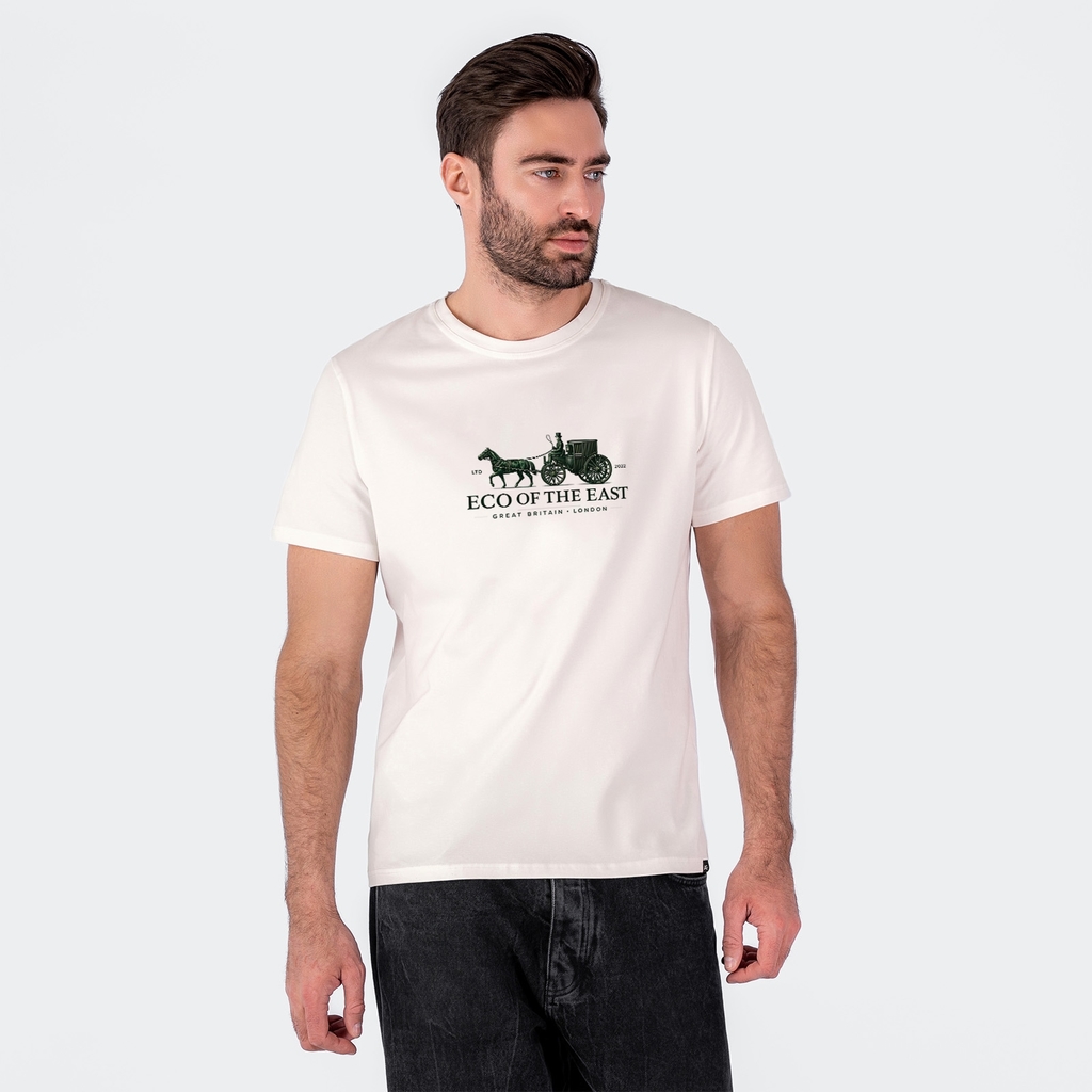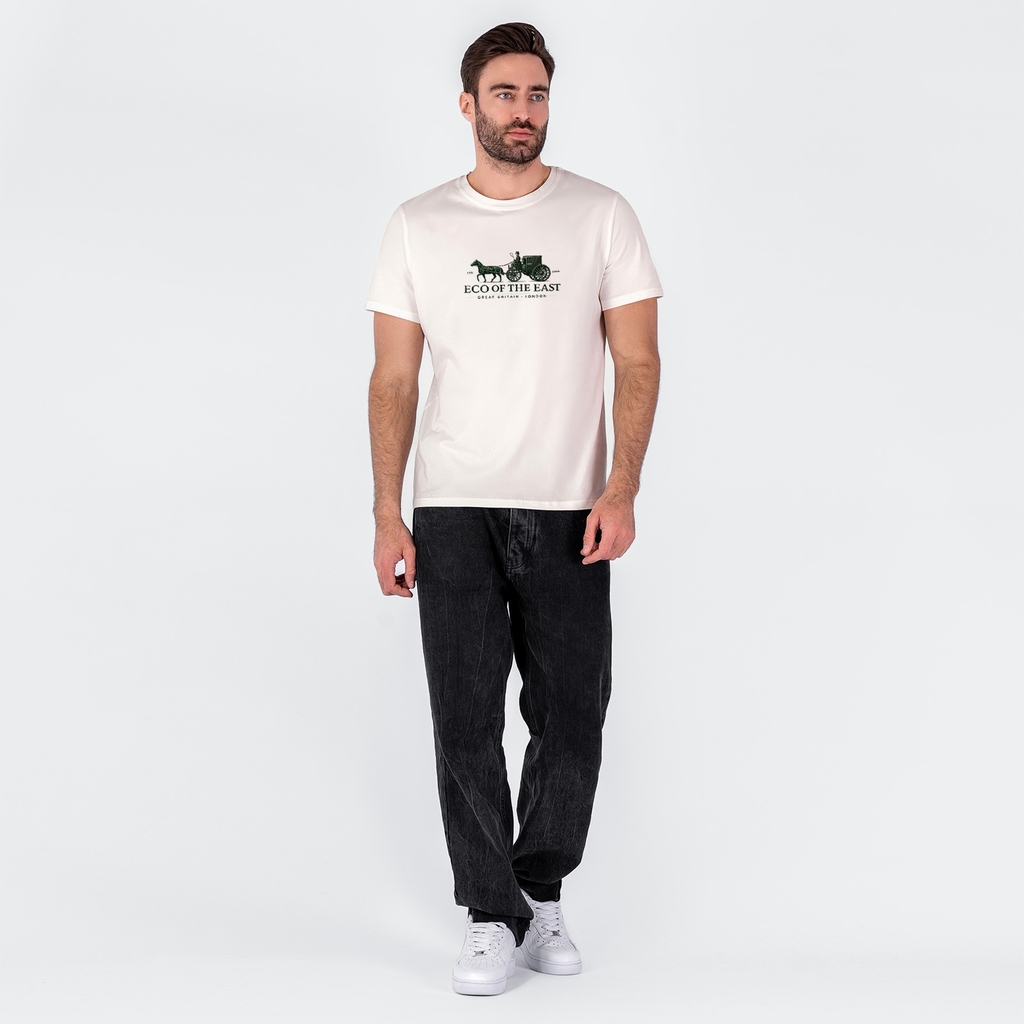 Мужская футболка с круглым вырезом горловины (принт "Eco of the East").Материал: Cotton - материал из натуральных волокон, который удобен в носке, быстро впитывает и отводит от тела влагу, хорошо проп... Показать описаниеускает воздух и не раздражает кожу. Хлопок гигиеничен, обладает устойчивостью к истиранию и разрыву, помогает балансировать температуру для избегания перегрева. В стирке требует более бережного обращения. Рекомендуется утюжить и стирать вывернутыми (особенно изделия с принтом) на изнаночную сторону при температуре 30 градусов.ВНИМАНИЕ! Оттенок цвета ткани может отличаться в зависимости от партии товара, также могут быть незначительные отличия цветовых оттенков разных деталей одного изделия. Производители ткани не считают это браком, объясняя это технологическими особенностями производства. Цветовая гамма товара может быть изменена (в рамках допуска) производителем трикотажных полотен в зависимости от серии поставки без предварительного уведомления.В связи с этим, подбор комплекта одежды в одном оттенке возможен только в процессе формирования единого заказа.Состав: 92% Cotton, 8% Elastane