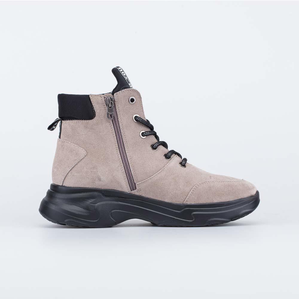 Ботинки в спортивном стиле имеют байковый утеплитель и предназначены для осенней и весенней погоды. Верх выполнен из натурального нубука цвета хаки. Классический язычок и манжет из текстиля обеспечива... Показать описаниеют отведение влаги во время активного движения. Подкладка из байки (больше 80% натуральная овечья шерсть) и съемная войлочная стелька хорошо сохраняют тепло. Молния обеспечивает максимальную раскрываемость при обувании, а шнуровка позволяет подогнать обувь по ноге и надежно её зафиксировать. Пяточная и носочная части защищены натуральной кожей с полиуретановым покрытием. Внутри защита пятки от трения - кожаная накладка поверх утеплителя. Подошва из ПУ легкая и отлично подходит для долгих прогулок. Модель анатомически правильная: пяточная часть имеет приподнятость по отношению к носочной, что создает оптимальную поддержку. Сделано в России.