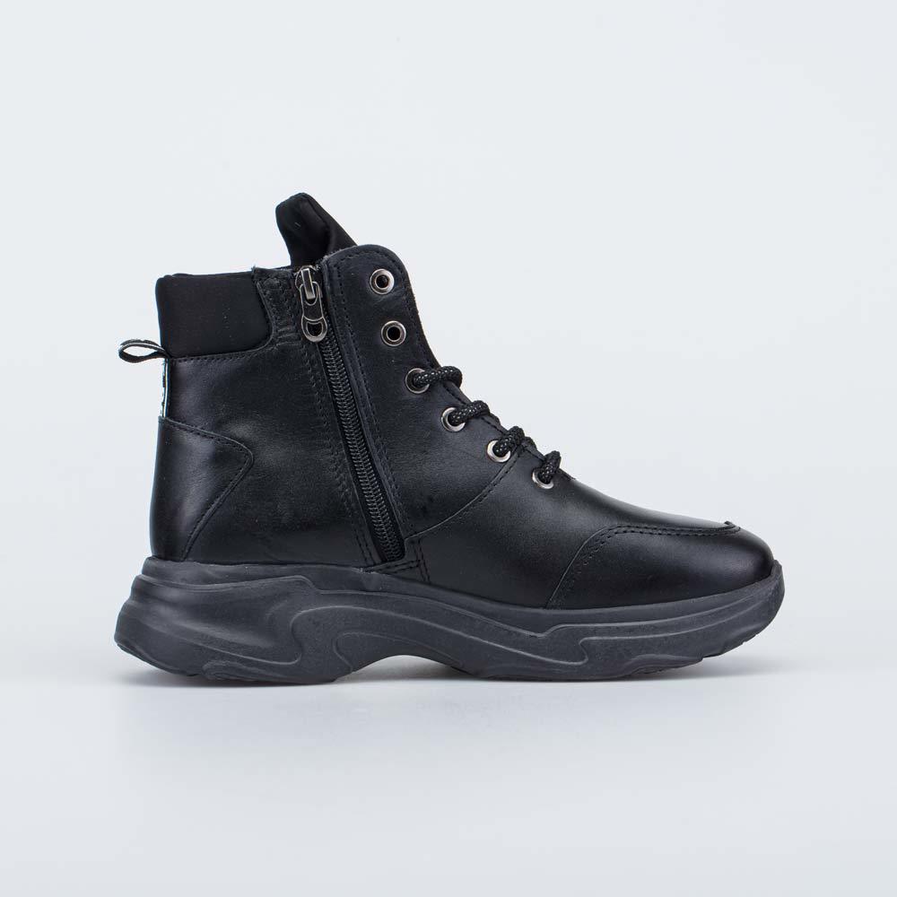 Ботинки в спортивном стиле имеют байковый утеплитель и предназначены для осенней и весенней погоды. Верх выполнен из гладкой натуральной кожи черного цвета. Классический язычок и манжет из текстиля об... Показать описаниееспечивают отведение влаги во время активного движения. Подкладка из байки (больше 80% натуральная овечья шерсть) и съемная войлочная стелька хорошо сохраняют тепло. Молния обеспечивает максимальную раскрываемость модели при обувании, а шнуровка позволяет подогнать обувь по ноге и надежно её зафиксировать. Пяточная и носочная части защищены натуральной кожей с полиуретановым покрытием. Внутри защита пятки от трения - кожаная накладка поверх утеплителя. Модель анатомически правильная: пяточная часть имеет приподнятость по отношению к носочной, что создает оптимальную поддержку. Подошва из ПУ легкая и отлично подходит для долгих прогулок. Сделано в России.